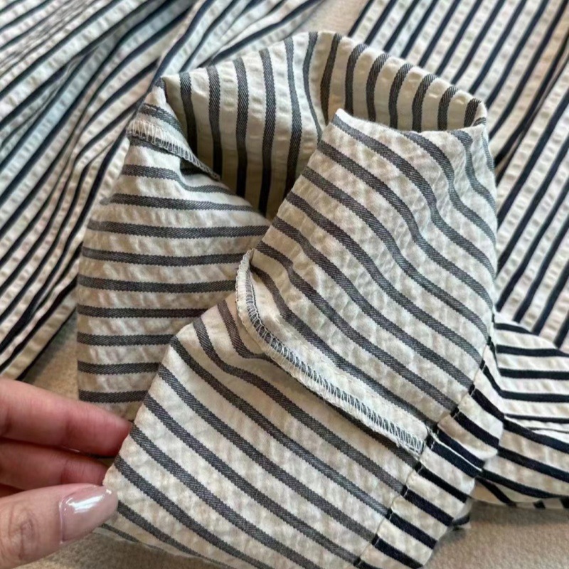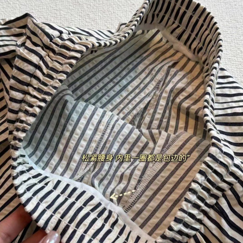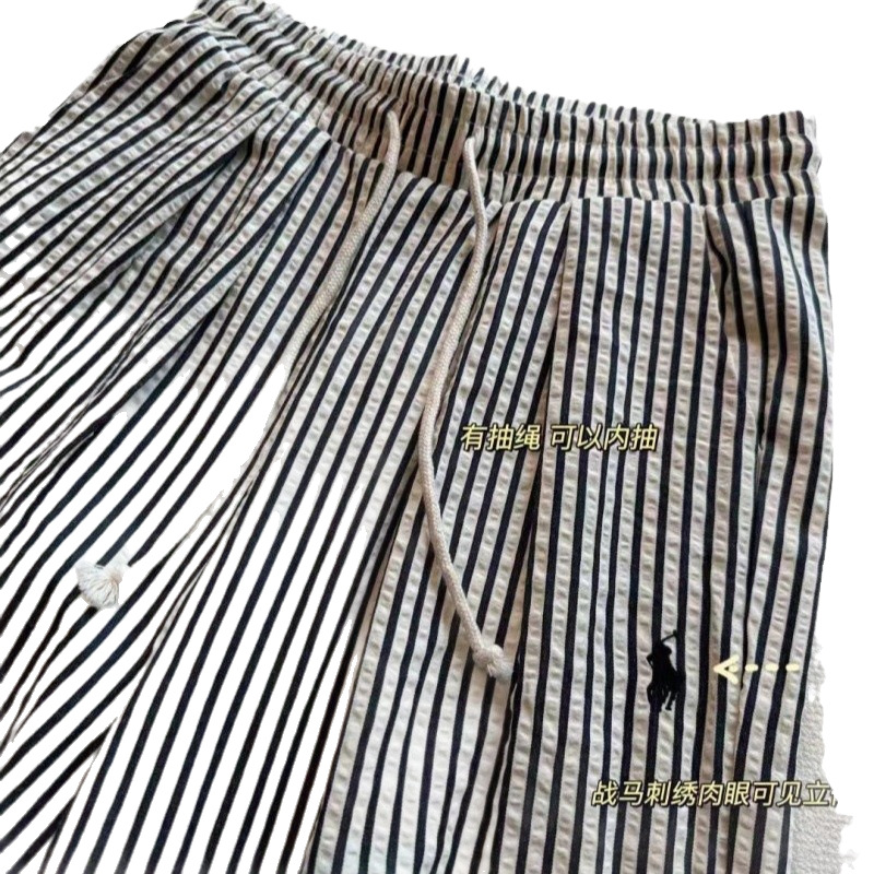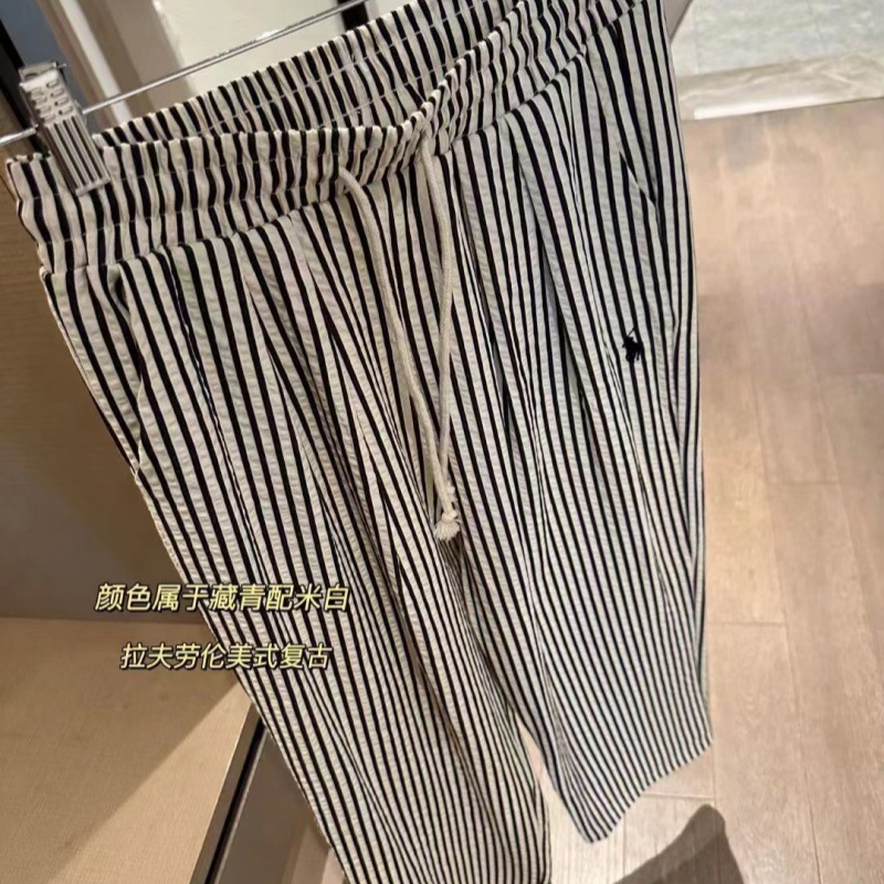 러프 포니 같은 스타일 플랫 여성 바지 24 여름 새 줄무늬 자수 느슨한 허리 끈 캐주얼 스트레이트 바지