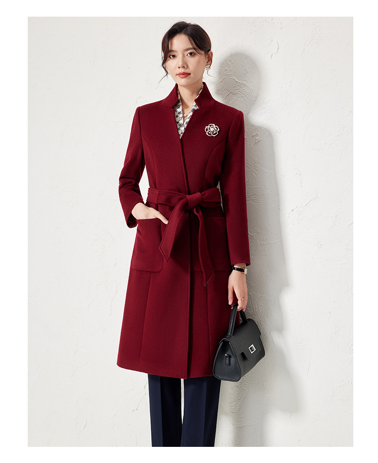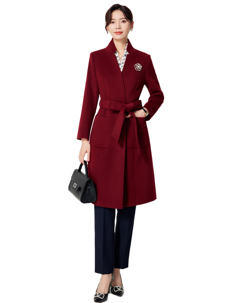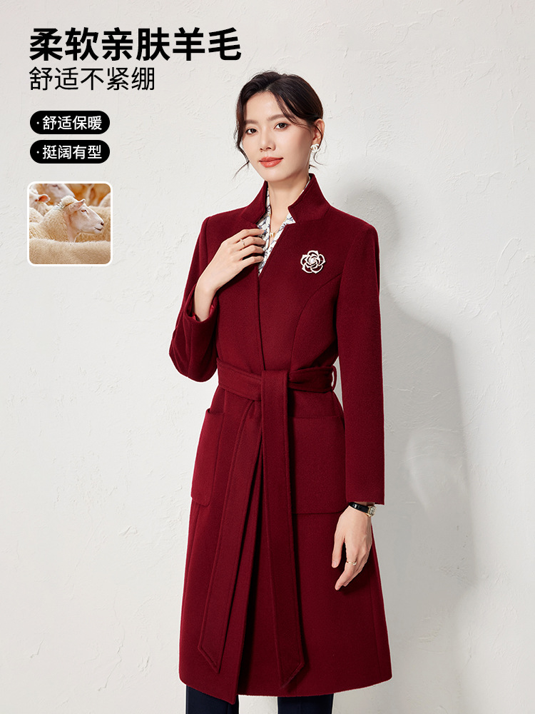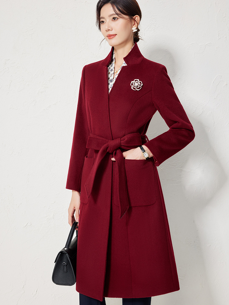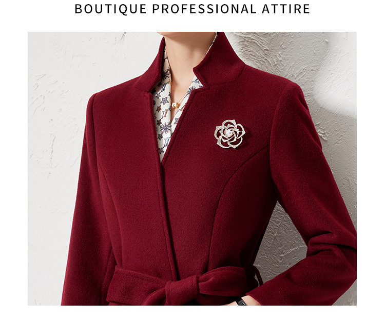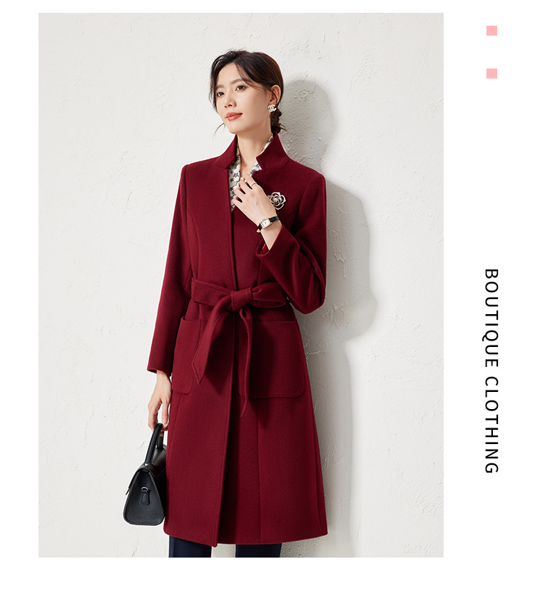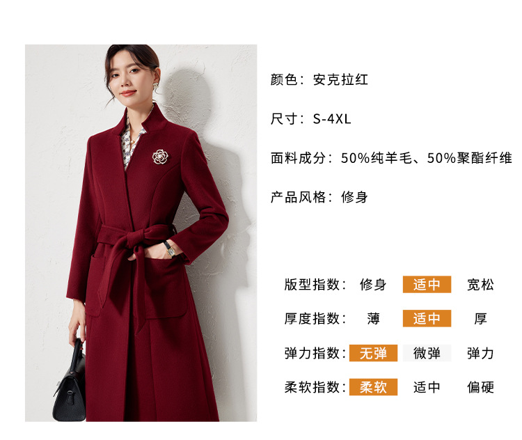 가을과 겨울 모직 코트 여성의 높은 감각 중간 길이의 유행 수직 칼라 앙카라 레드 비즈니스 착용 통근 모직 코트