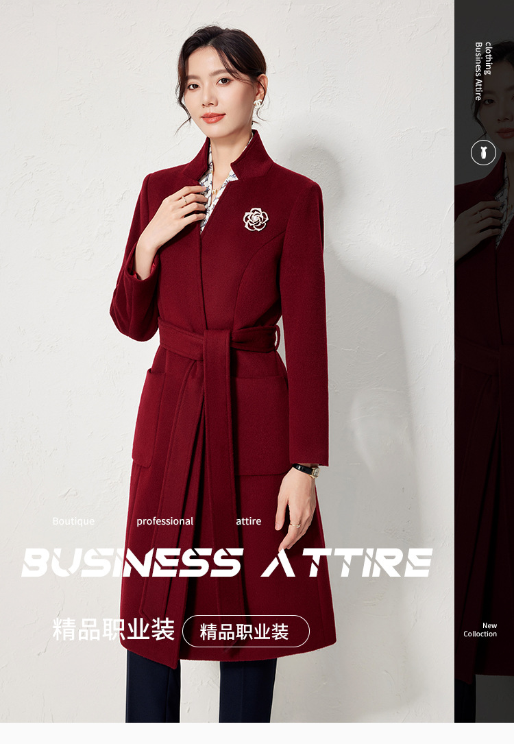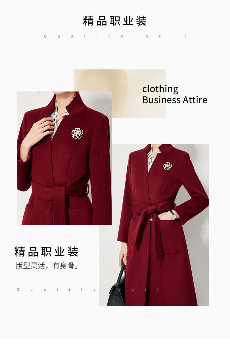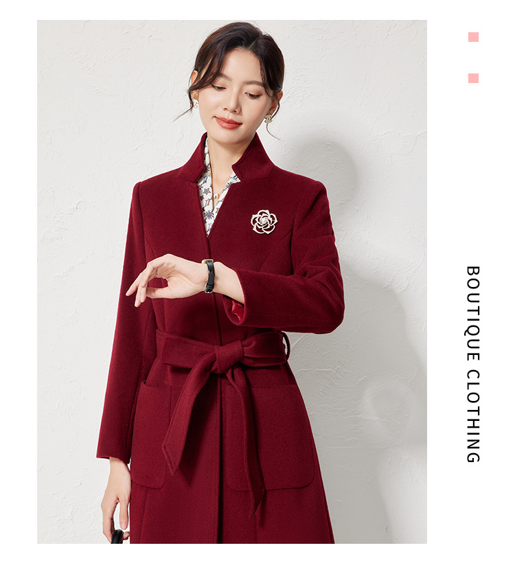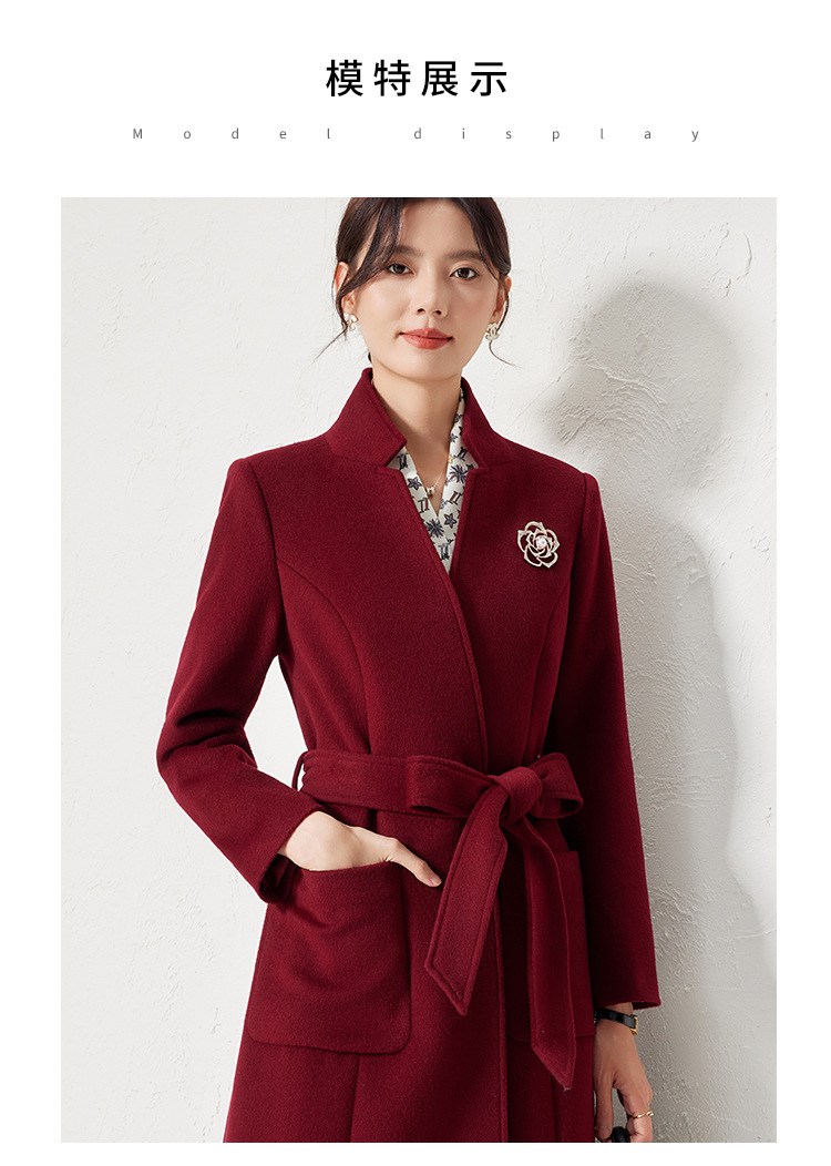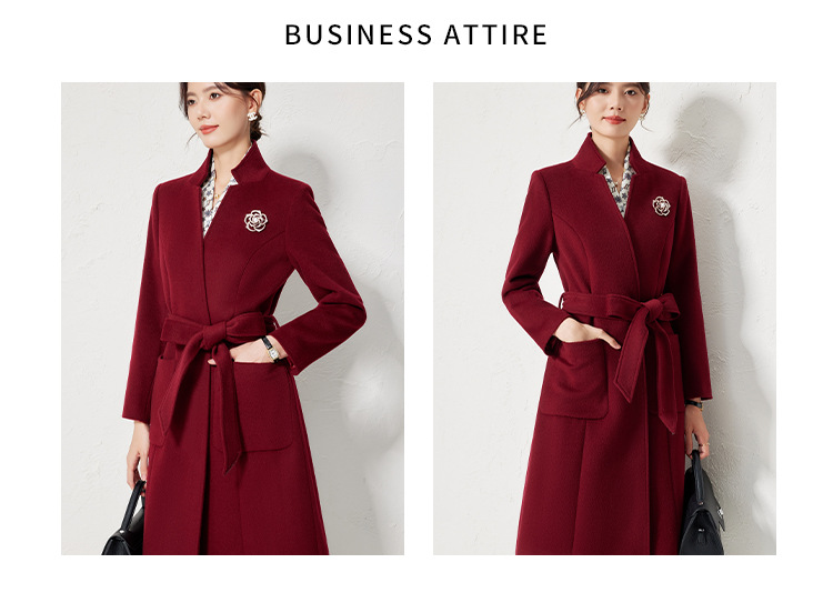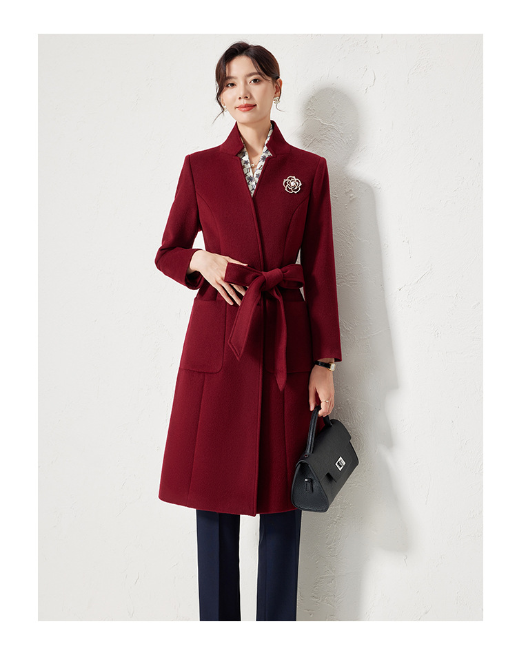가을과 겨울 모직 코트 여성의 높은 감각 중간 길이의 유행 수직 칼라 앙카라 레드 비즈니스 착용 통근 모직 코트
