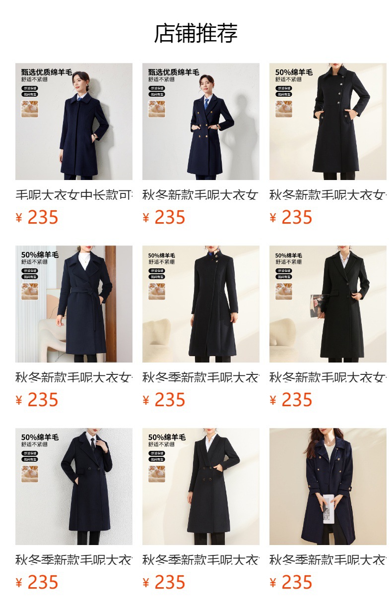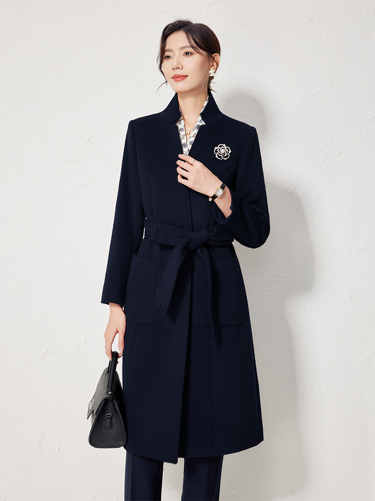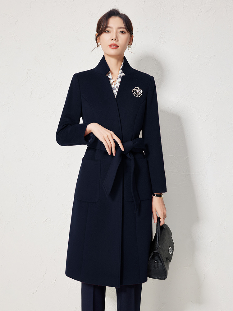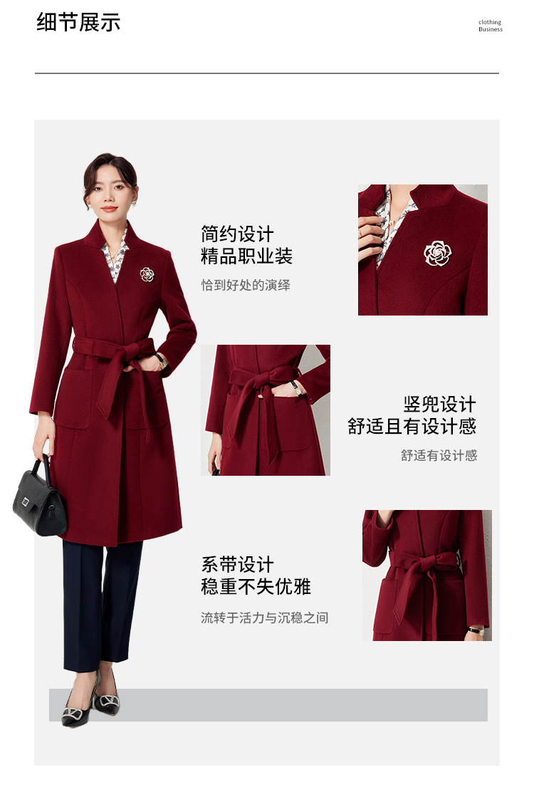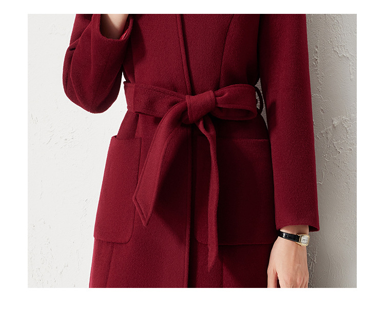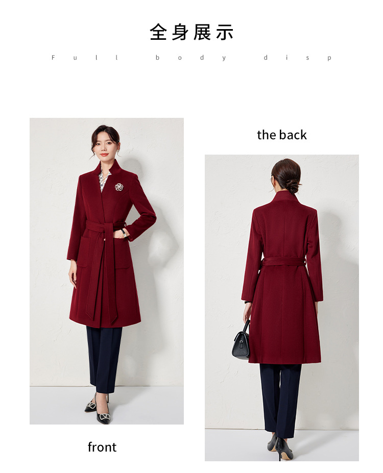 가을과 겨울 모직 코트 여성의 높은 감각 중간 길이의 유행 수직 칼라 앙카라 레드 비즈니스 착용 통근 모직 코트