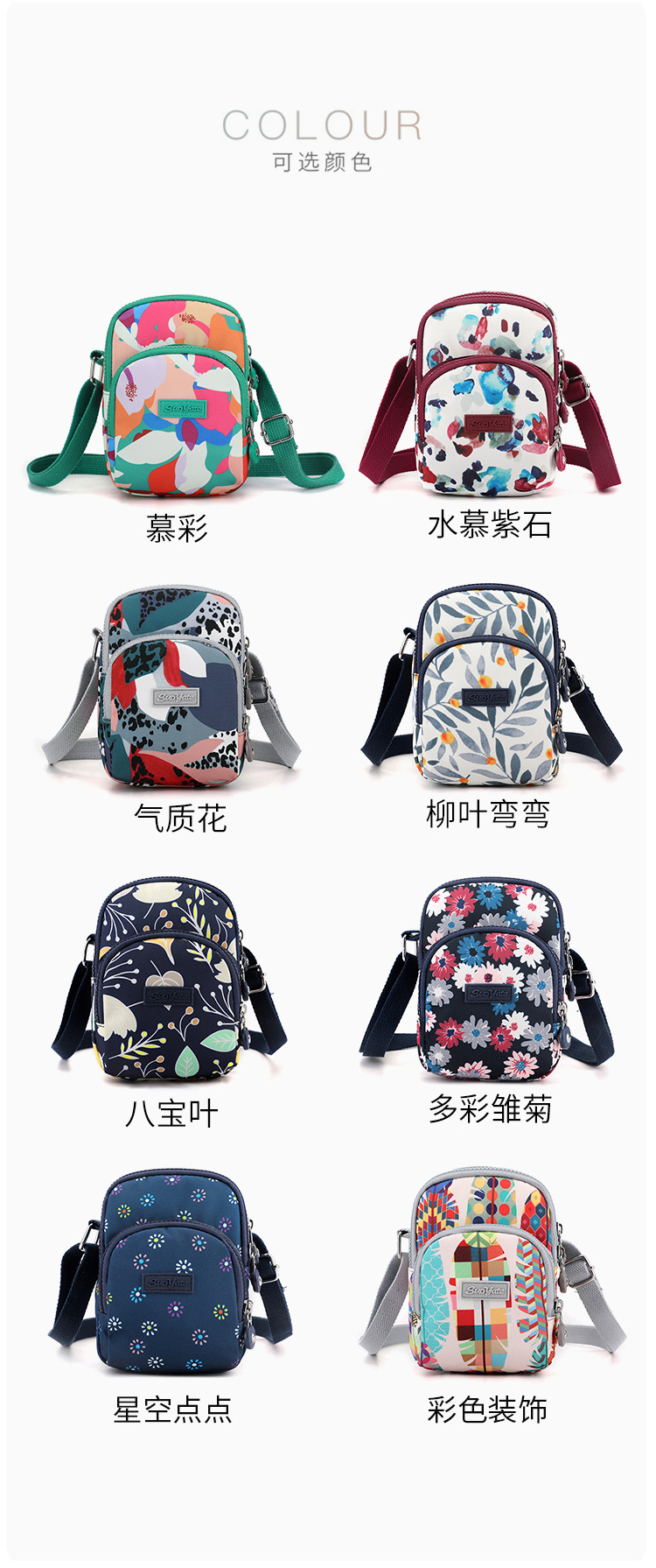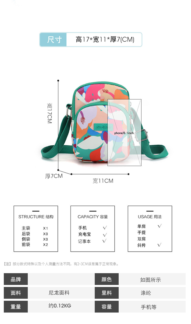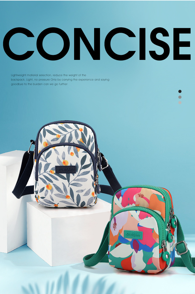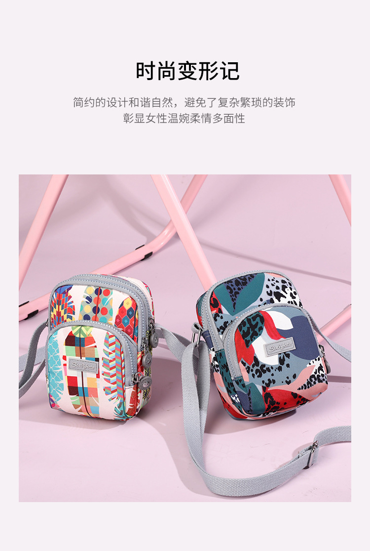 국경 도매 여성의 휴대 전화 가방 어깨 크로스 바디 백 유행 유행 유행 나일론 인쇄 작은 광장 가방 동전 지갑 가방