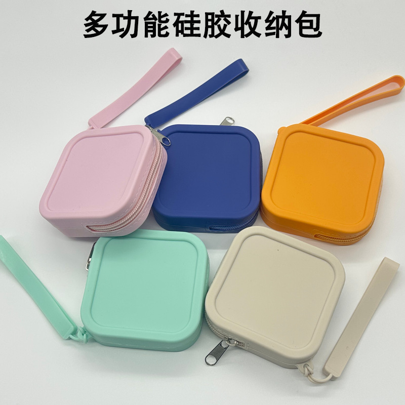 실리콘 변경 저장 작은 사각형 가방 립스틱 은행 카드 헤드셋 지퍼 저장 가방 핸드 키인 스타일 작은 가방