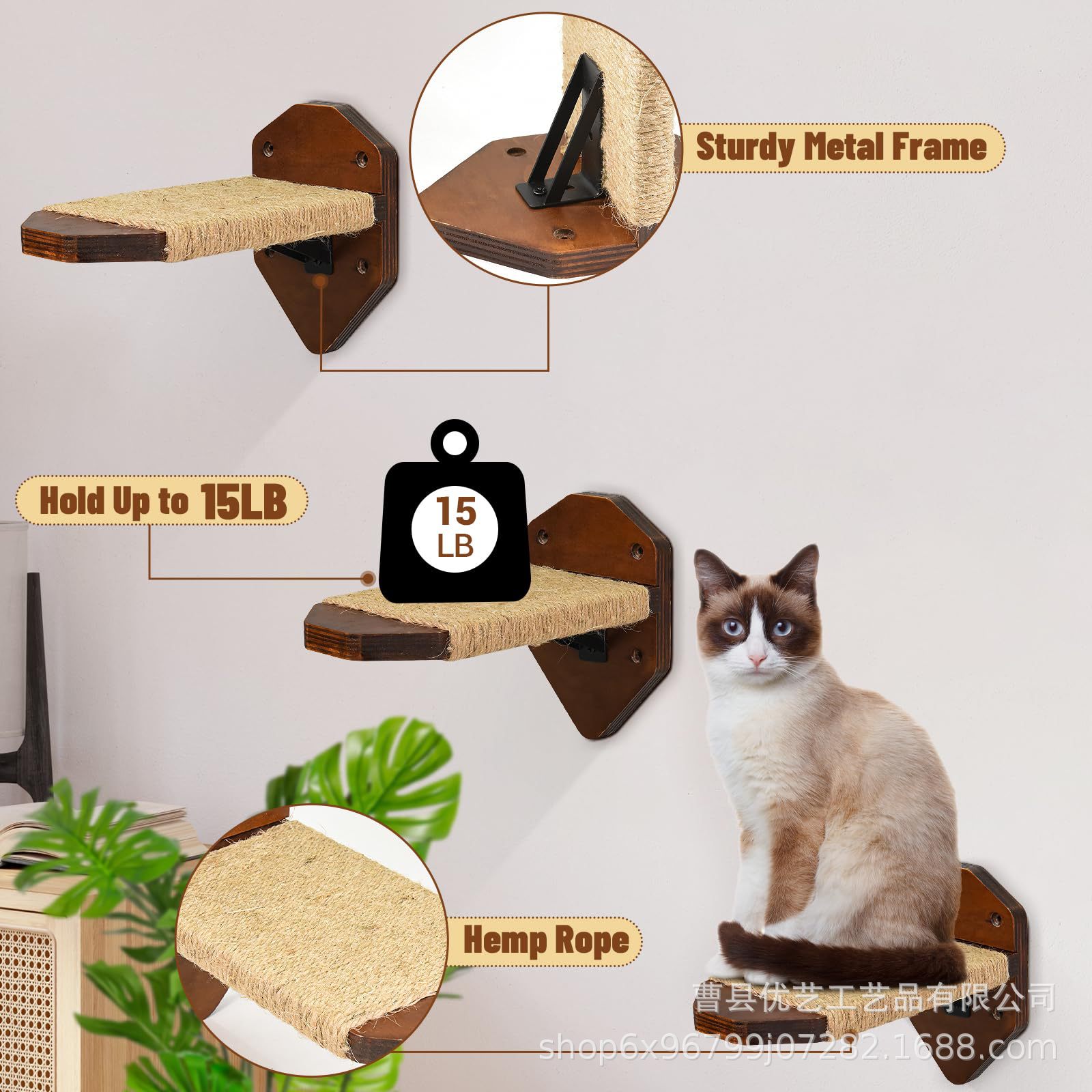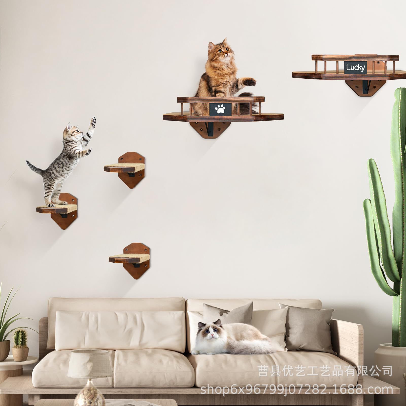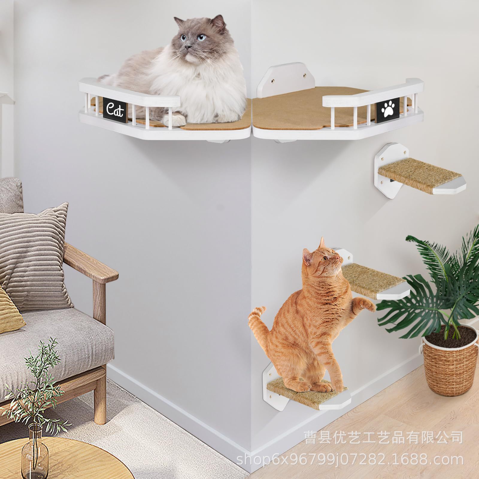 나무 고양이 등반 랙 걸이 거실 벽 장착 고양이 둥지 단단한 나무 고양이 등반 랙 고양이 계단 고양이 점프 테이블 장난감