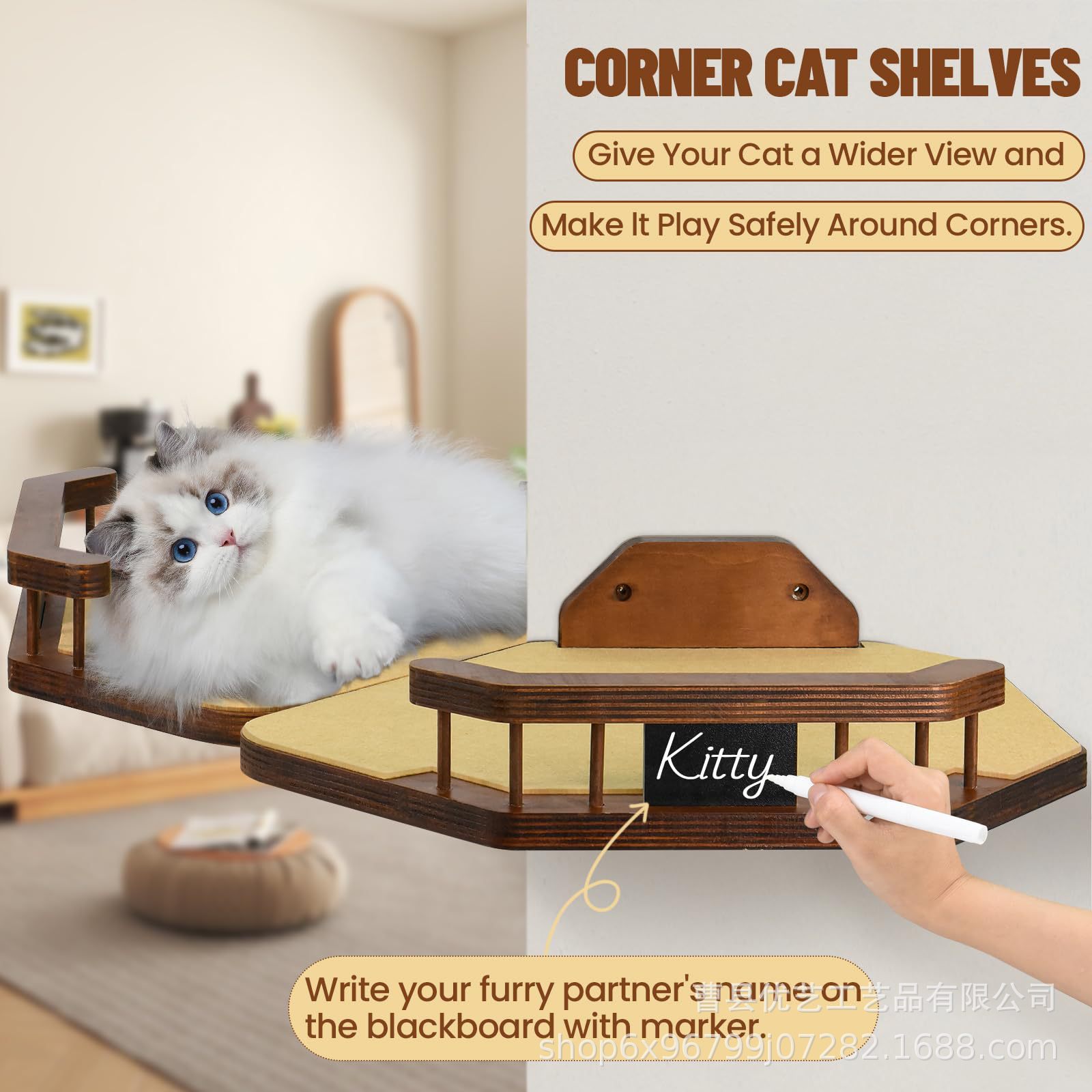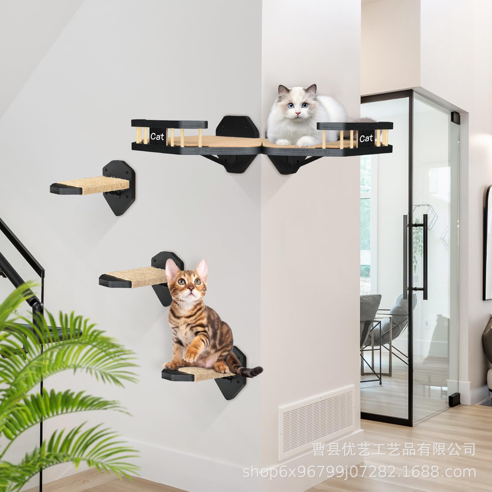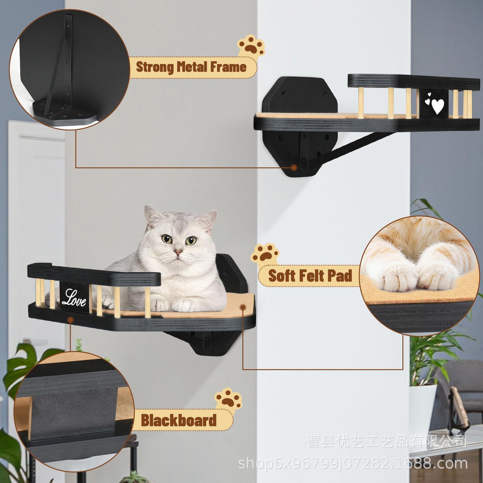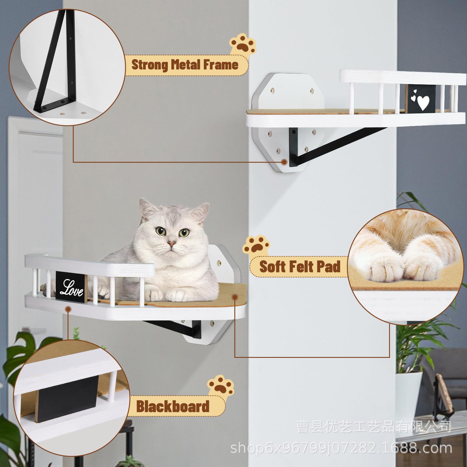 나무 고양이 등반 랙 걸이 거실 벽 장착 고양이 둥지 단단한 나무 고양이 등반 랙 고양이 계단 고양이 점프 테이블 장난감