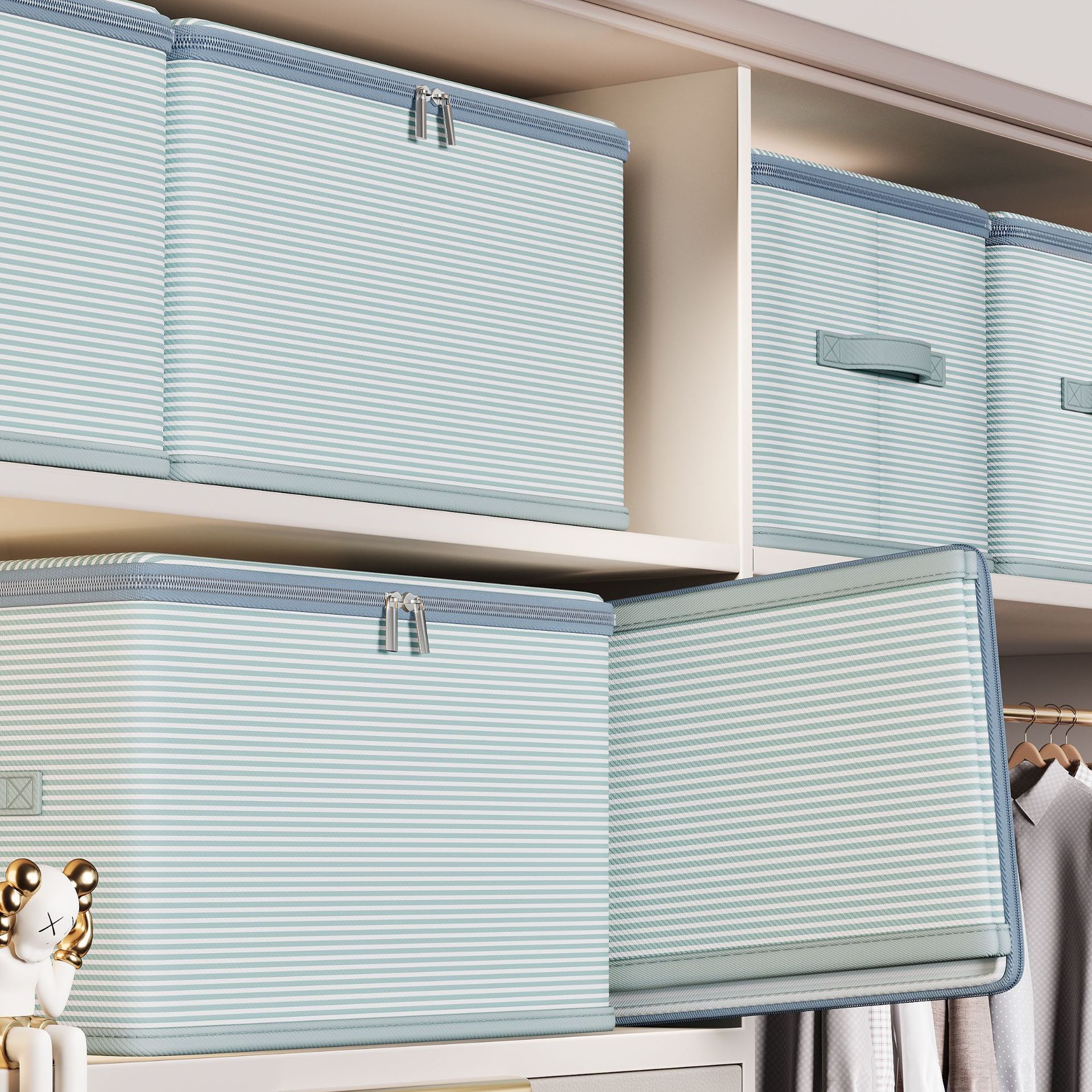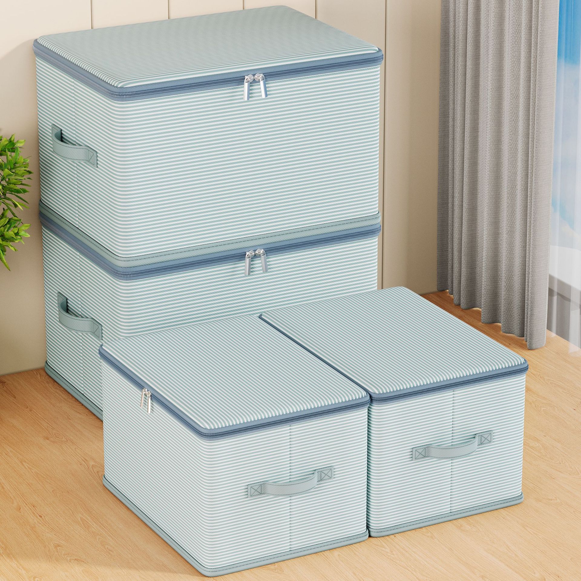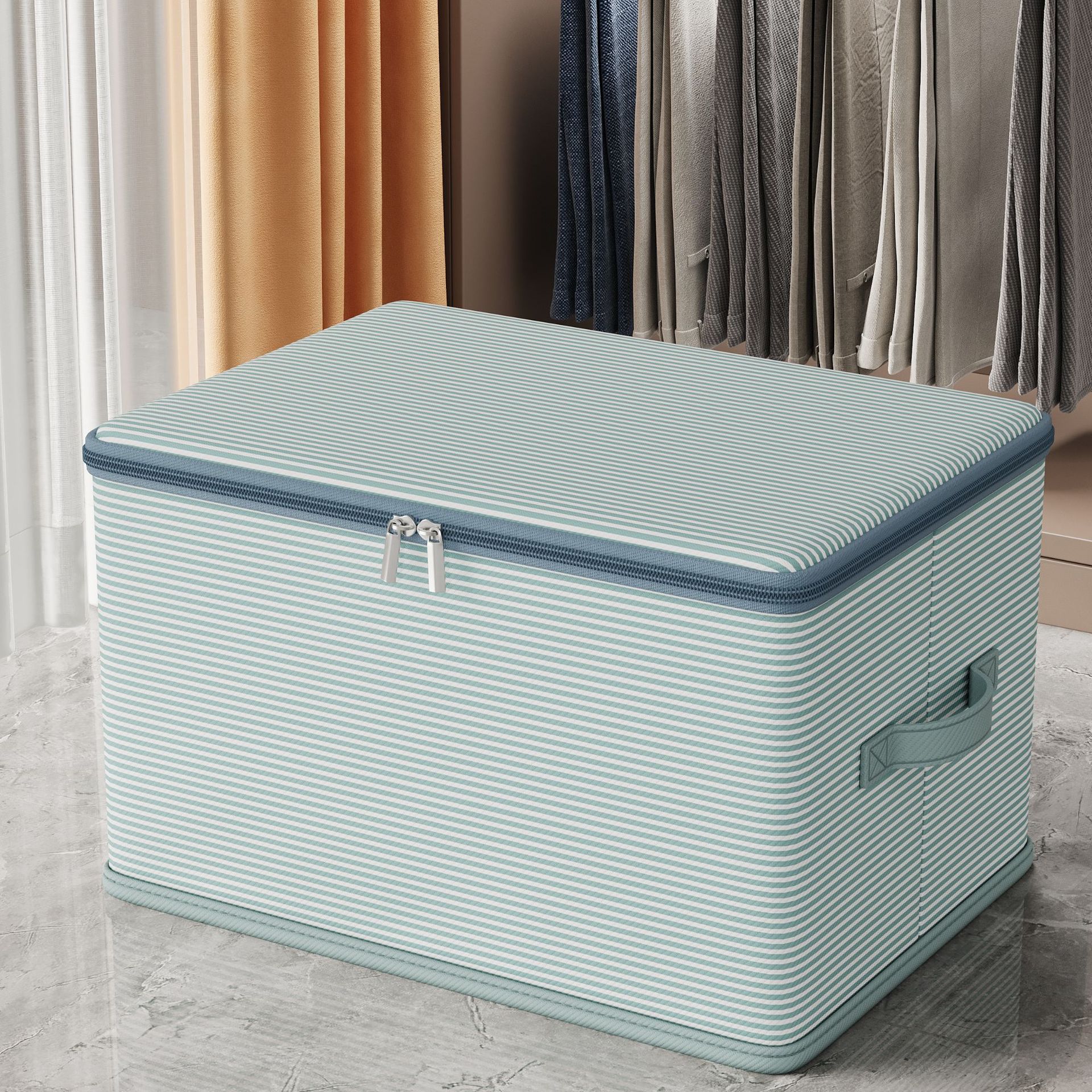 더블 지퍼 의류 보관 부직포 가정용 기숙사 접이식 보관 보관 상자 뚜껑 옷장 보관 상자