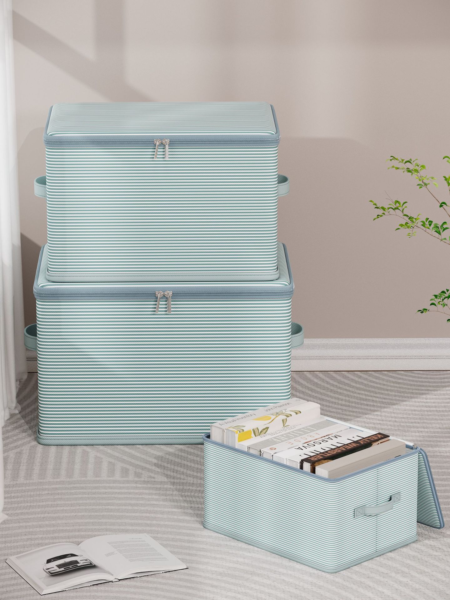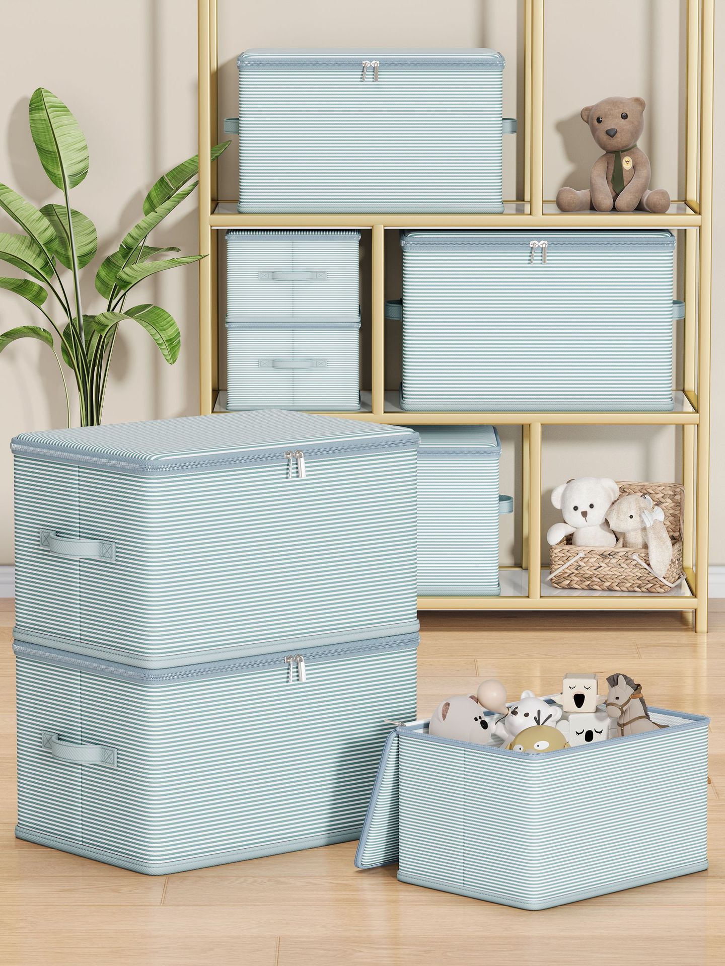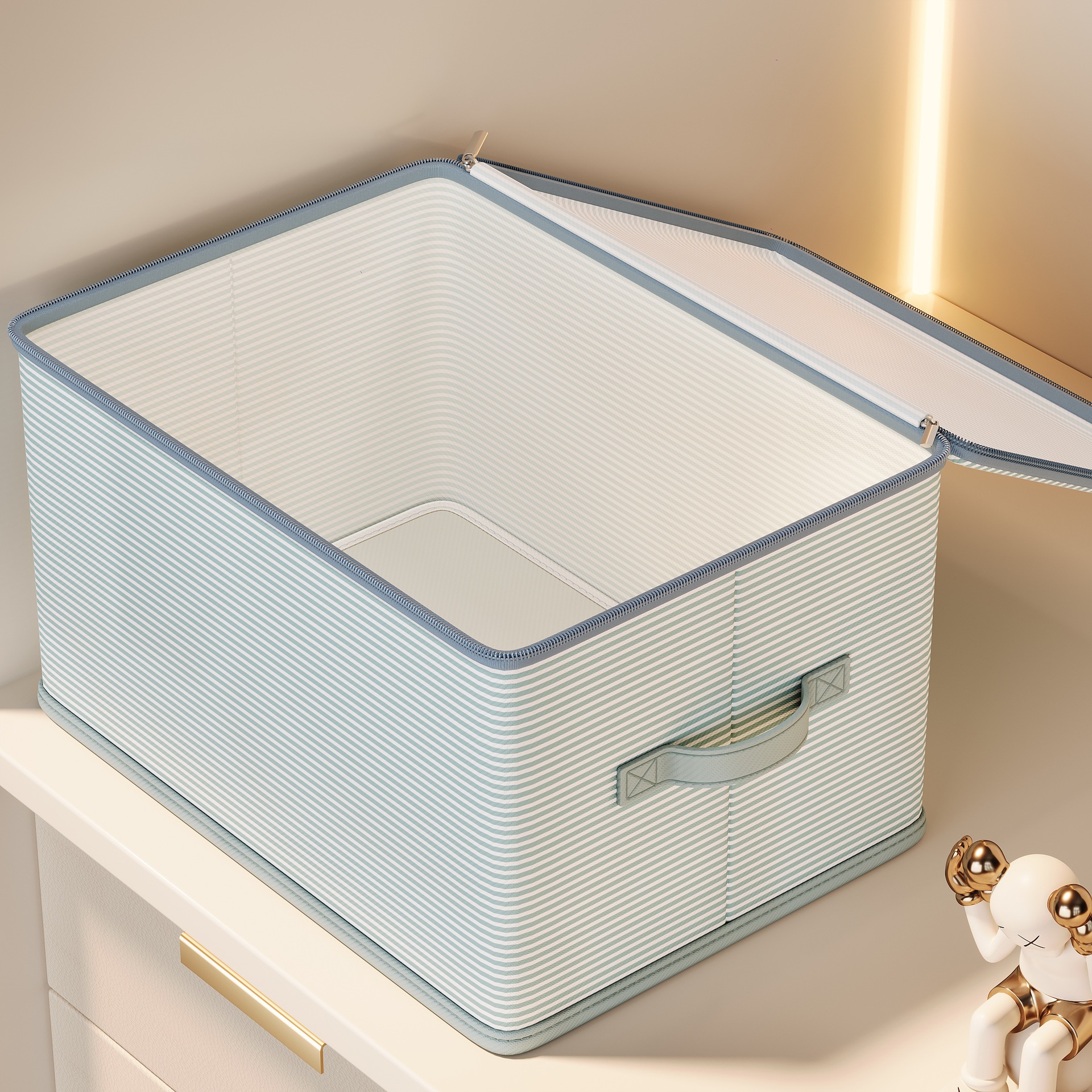 더블 지퍼 의류 보관 부직포 가정용 기숙사 접이식 보관 보관 상자 뚜껑 옷장 보관 상자