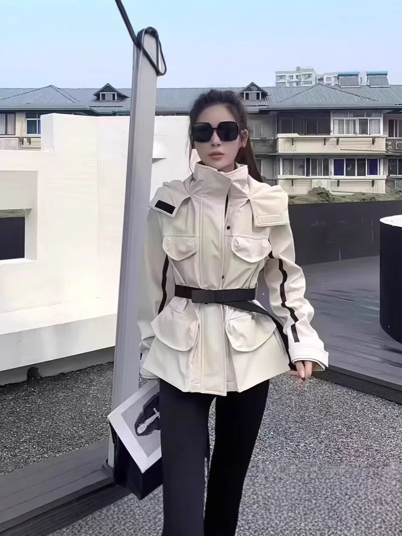 양미와 같은 스타일의 2025 가을 겨울 여성용 구스다운 패딩 재킷, 스탠드 칼라, 후드, 허리 조절 가능, 일본 및 한국 스타일 캐주얼