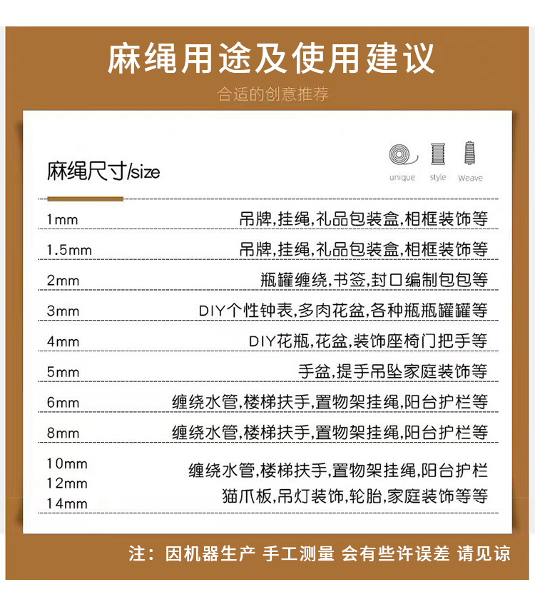 황마 로프 1-60mm 멀티 사양 하이 퀄리티 수제 DIY 고양이 잡아 로프 선물 상자 장식 바인딩 로프 거친 대마 로프