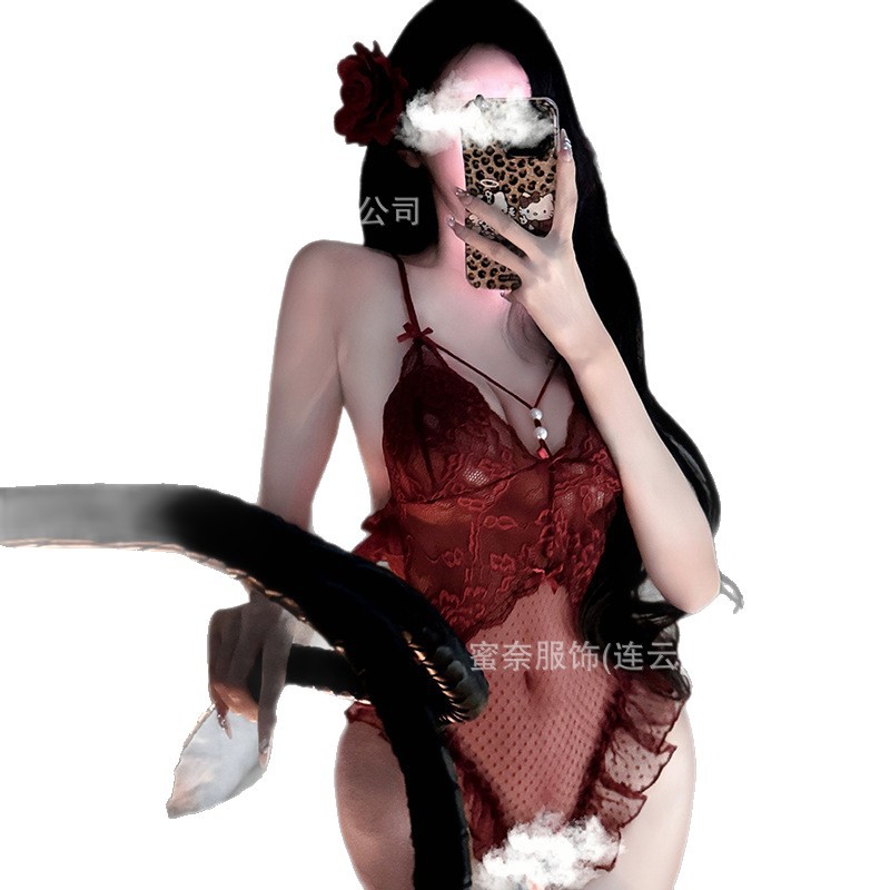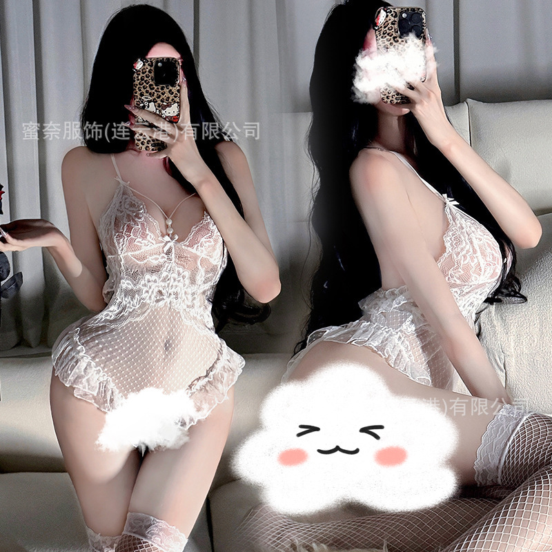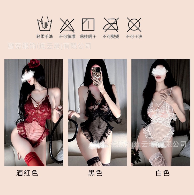 미나 국경 간 섹시한 란제리 여성의 섹시한 레이스 점프 수트 잠옷 속이 빈 유니폼 유혹 오픈 파일 점프 수트