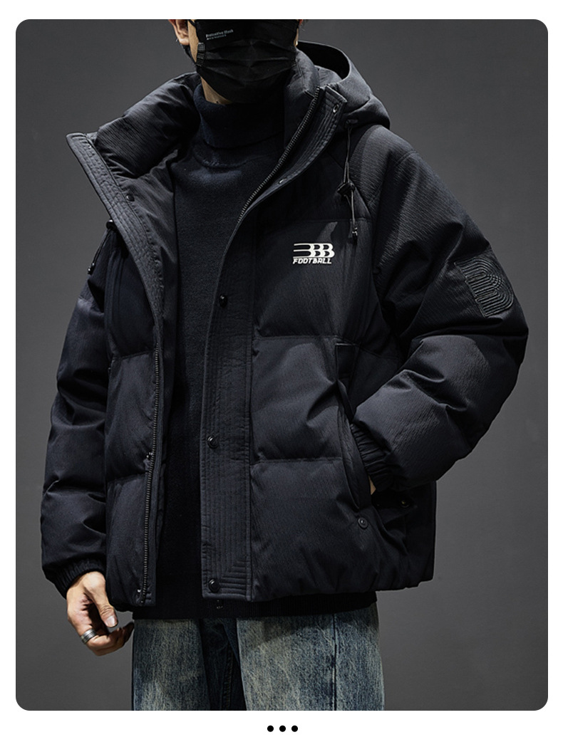 Tong Xiansen 짧은 다운 재킷 남자의 겨울 흰 오리 두꺼운 따뜻한 빵 옷 남자의 느슨한 후드 재킷