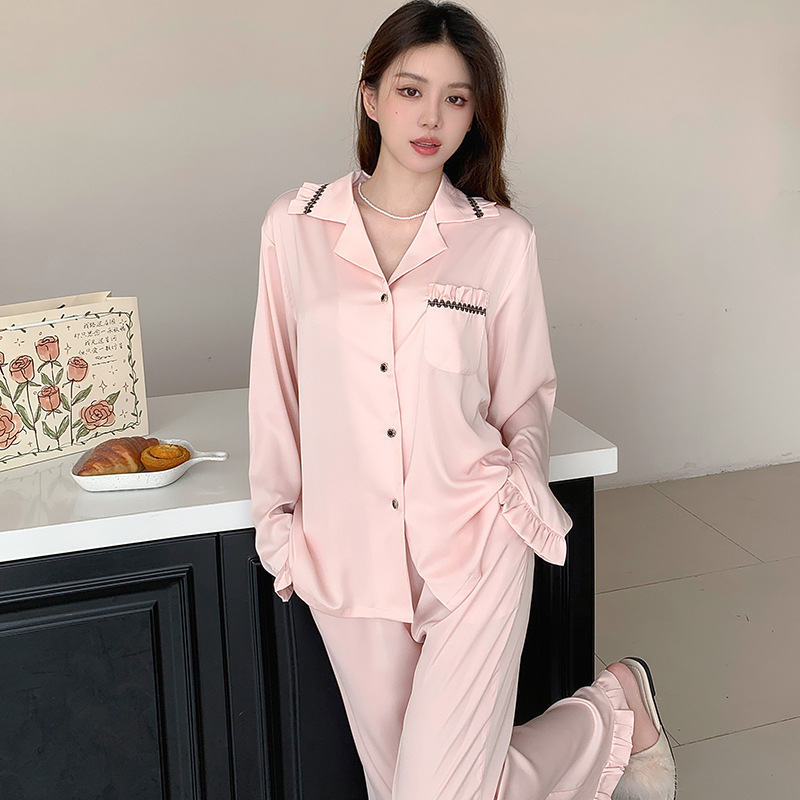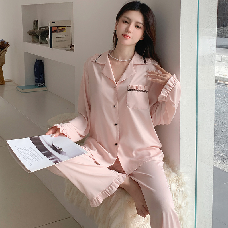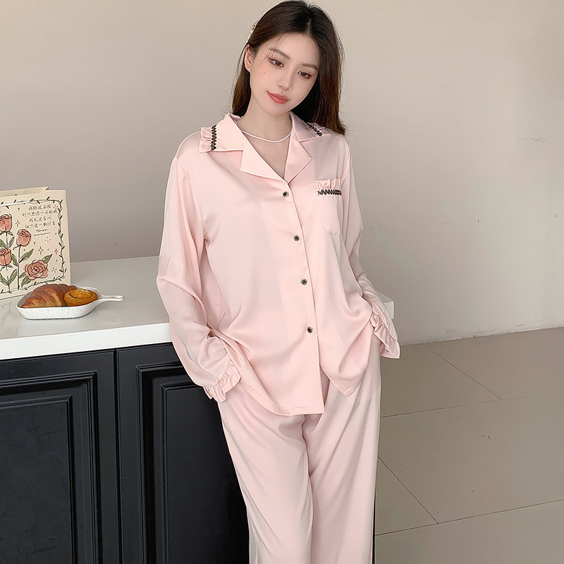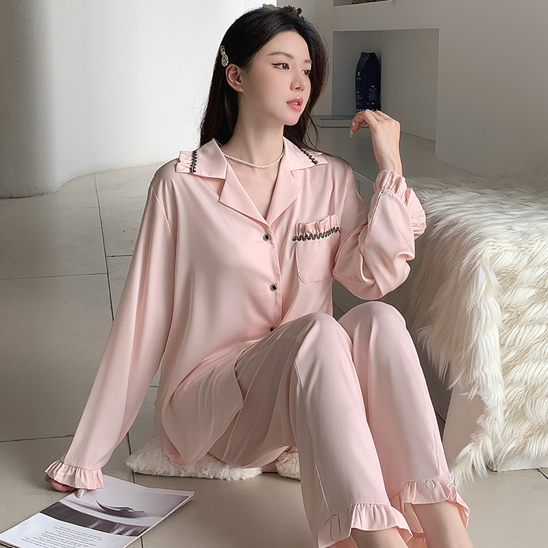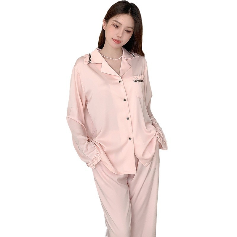 여성용 아이스 실크 잠옷, 여름용 긴팔 실크 얇은 투피스 세트, 외출복으로도 가능, 큰 사이즈, 아세테이트 봄 가을 홈웨어