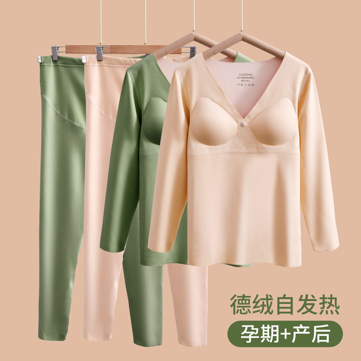 열 속옷 임신 가을 및 겨울 산후 잠옷 임산부 데롱 플러스 사이즈 출산 출산 출산 출산 출산 수유 가을 의류 및 바지 세트