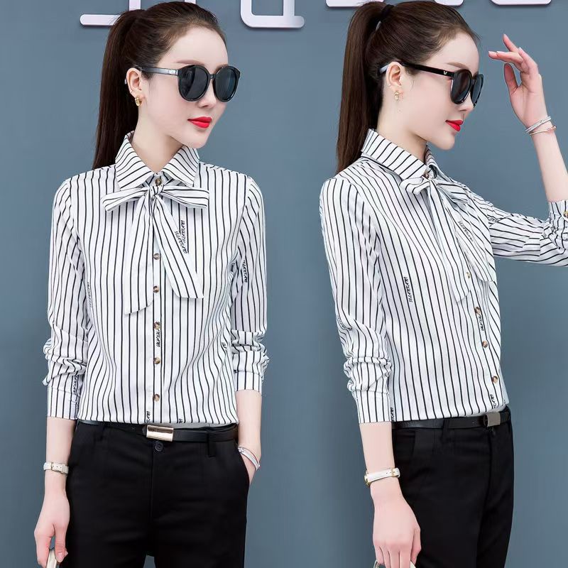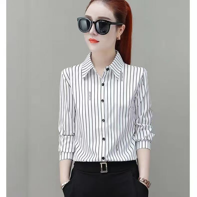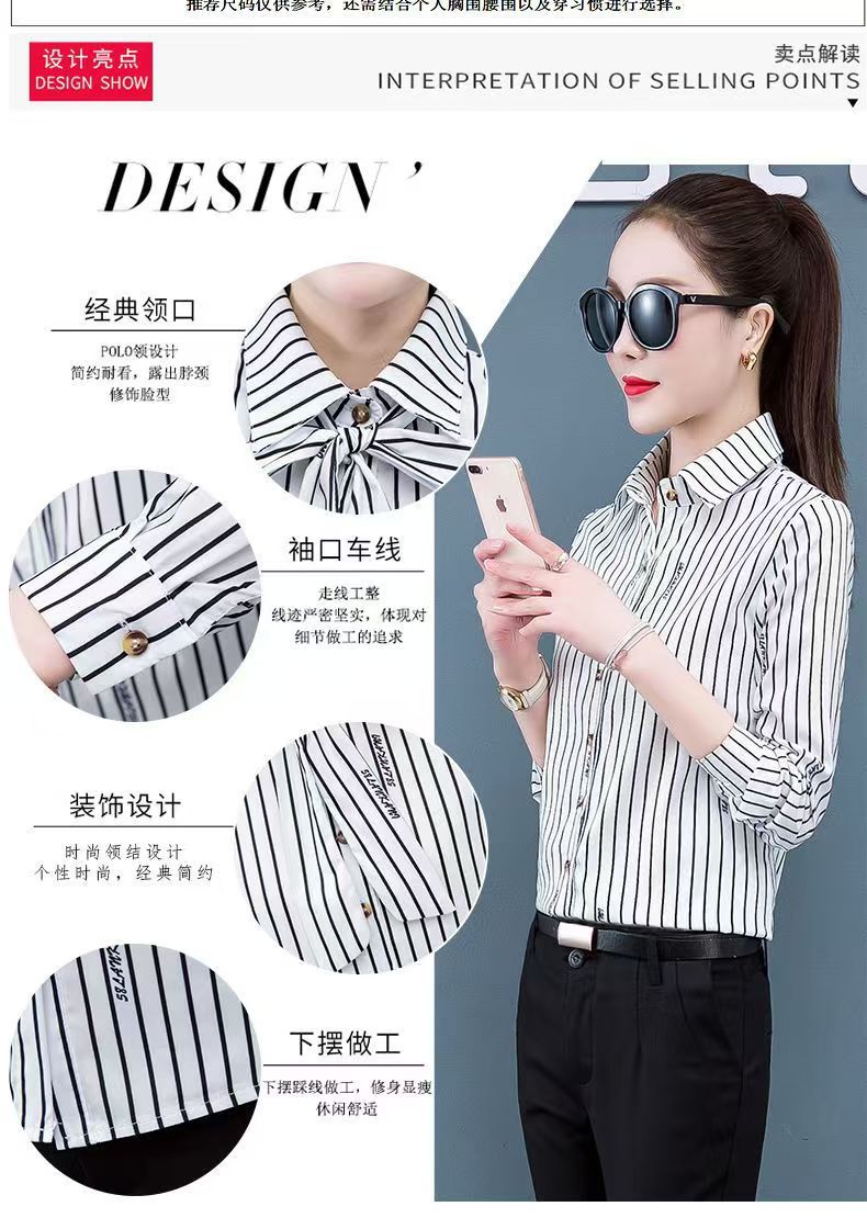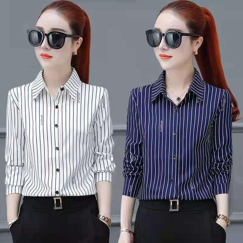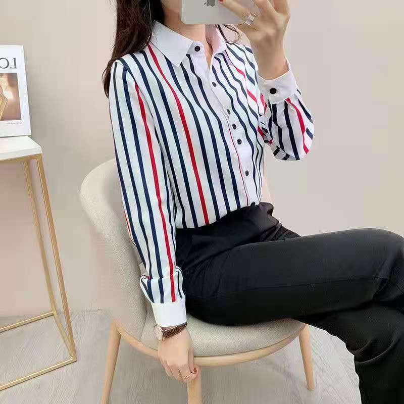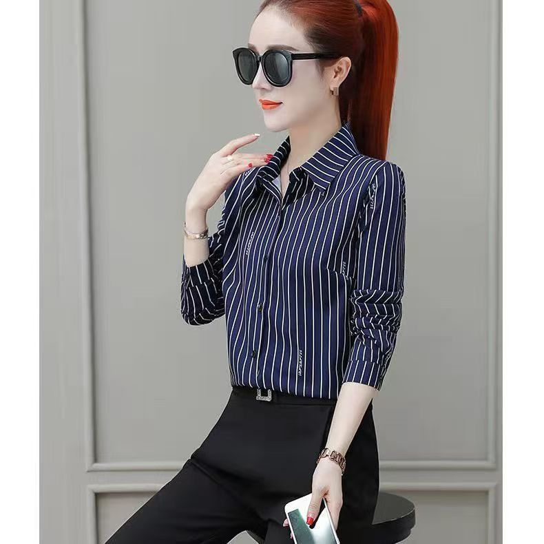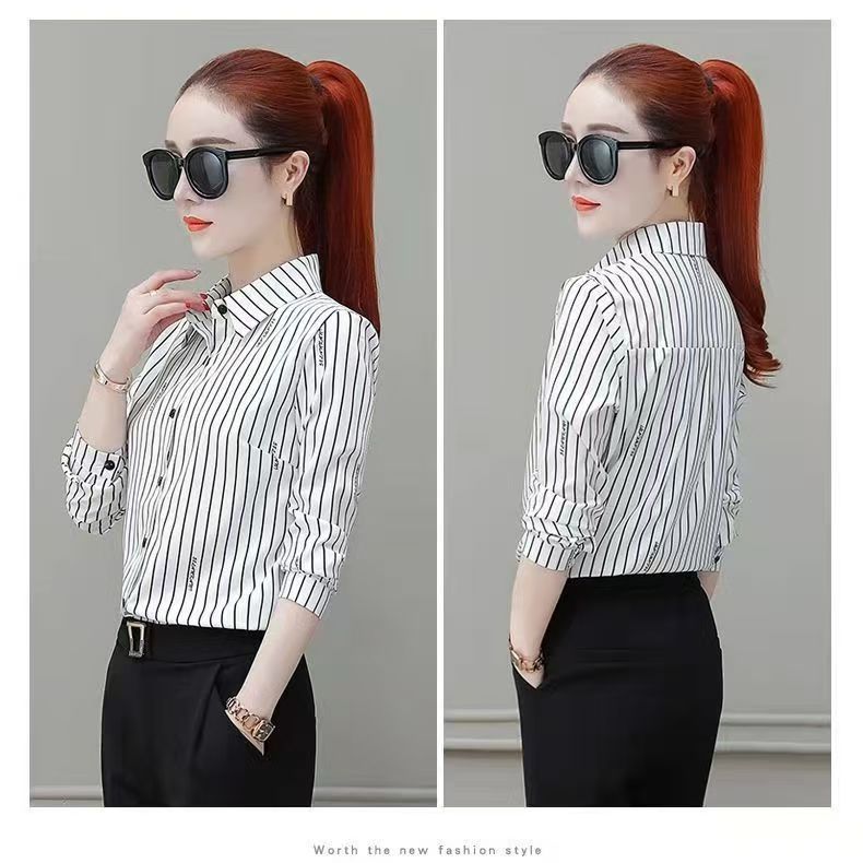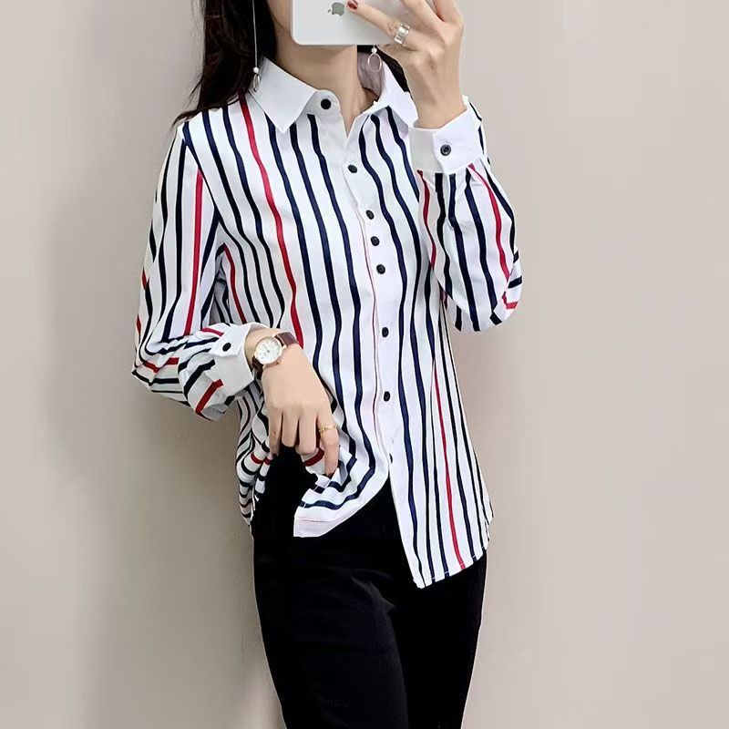 2024 줄무늬 셔츠 여성용 긴팔 한국 스타일 봄과 가을 여성 셔츠 디자인 센스 셔츠 전문 스타일 베이스 코트