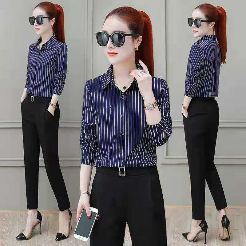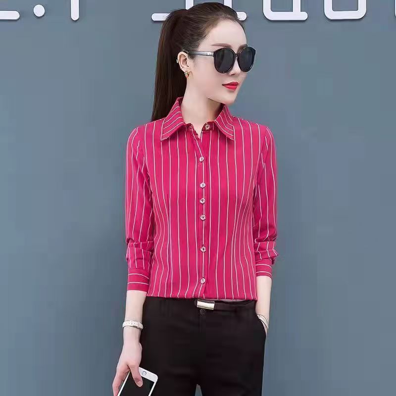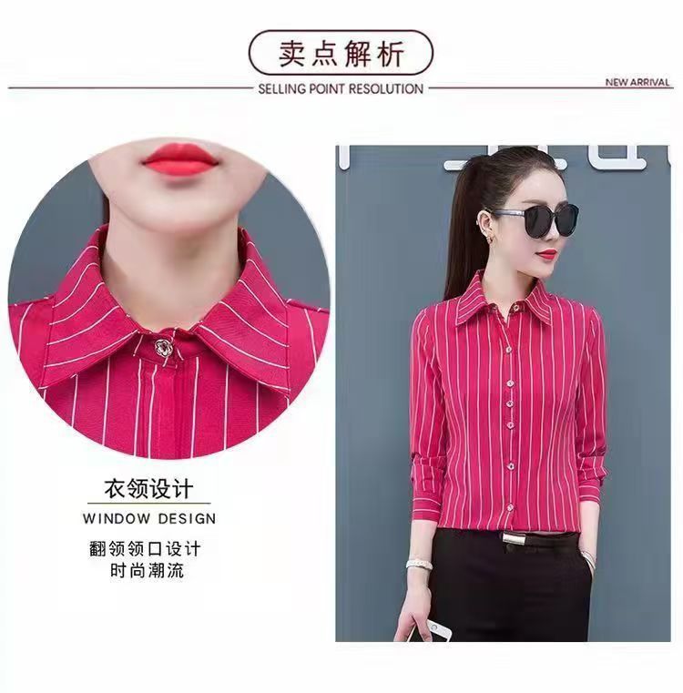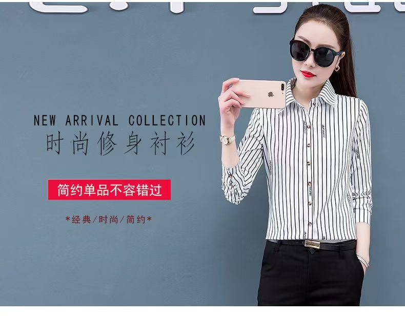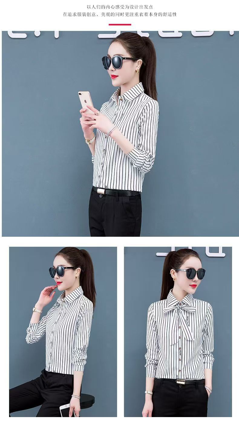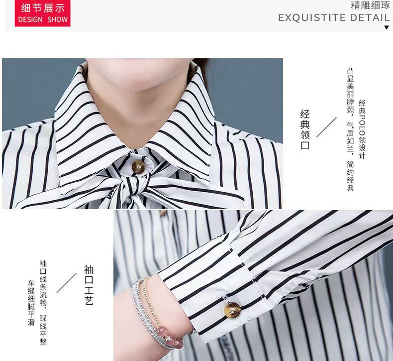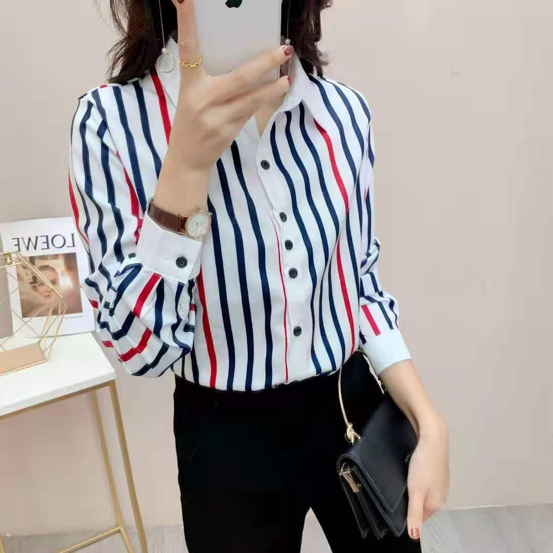 2024 줄무늬 셔츠 여성용 긴팔 한국 스타일 봄과 가을 여성 셔츠 디자인 센스 셔츠 전문 스타일 베이스 코트