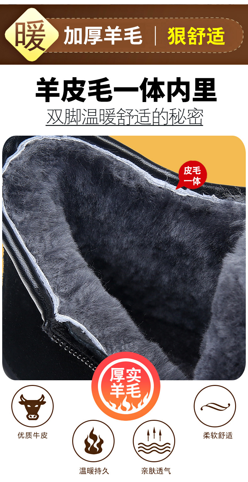 동북 대형 면화 남성용 겨울 모피 원피스 기모 따뜻한 스노우 부츠 남성용 두꺼운 감기 방지 울 정품 가죽 캐주얼