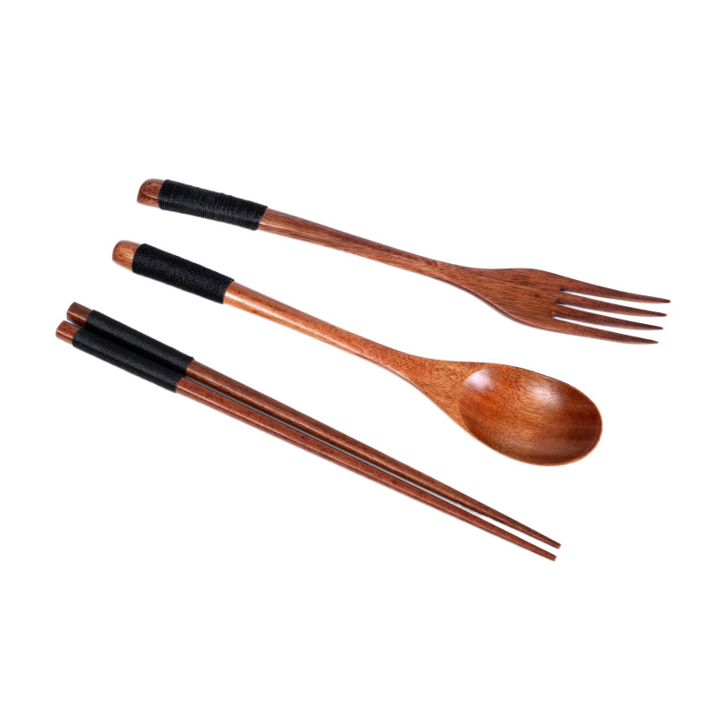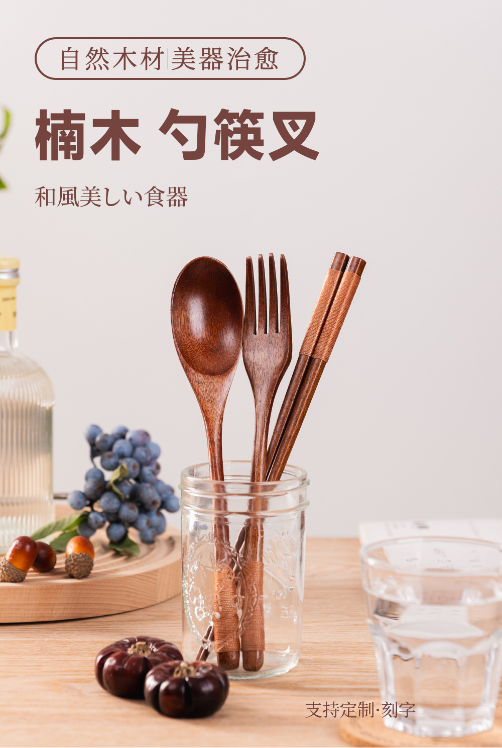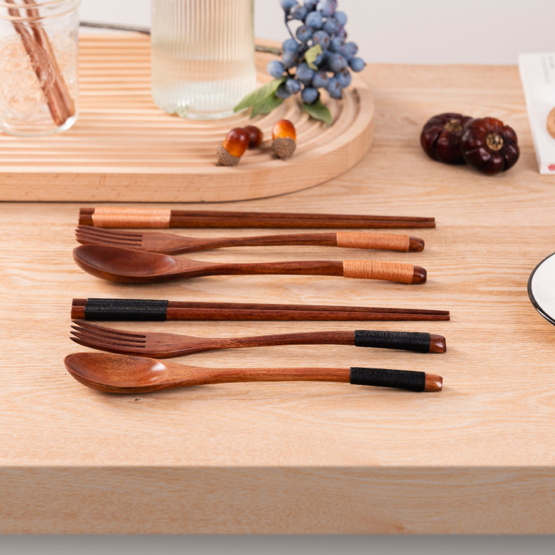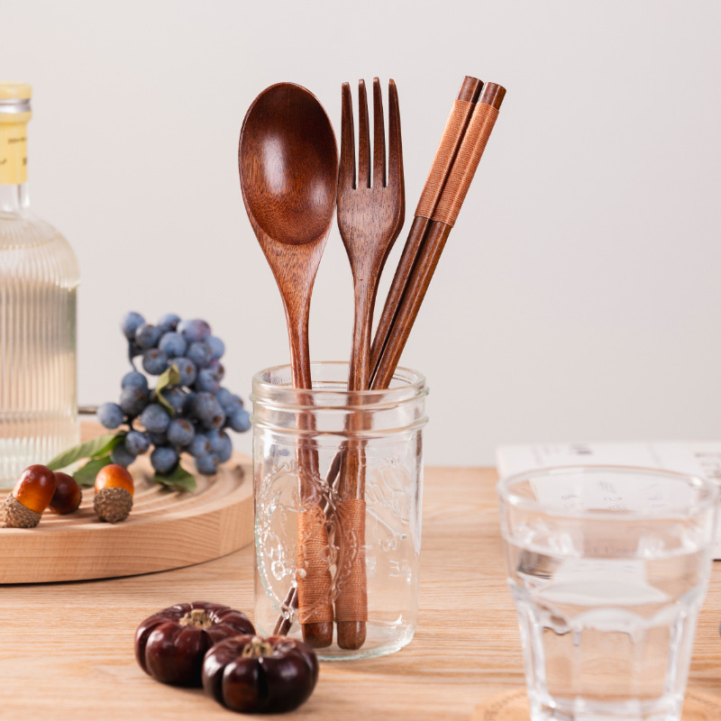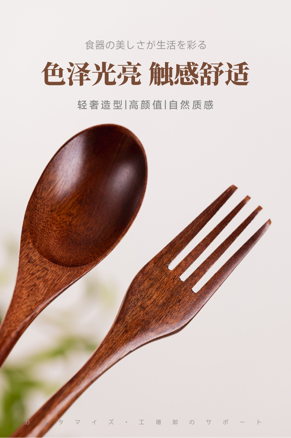 수저 세트 3종 일본식 원목 숟가락 포크 긴 손잡이 나무 숟가락 가정용 도매 편리한 식기