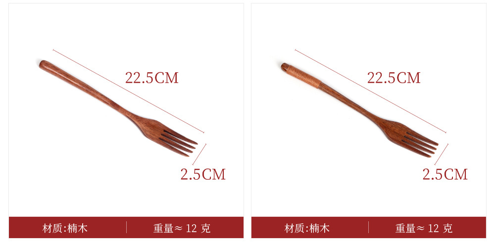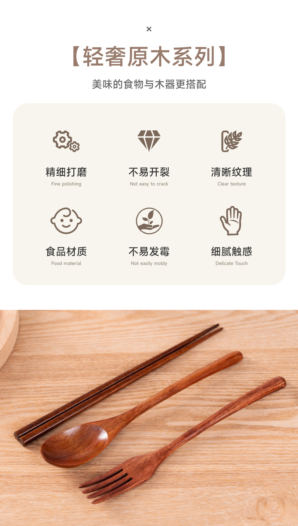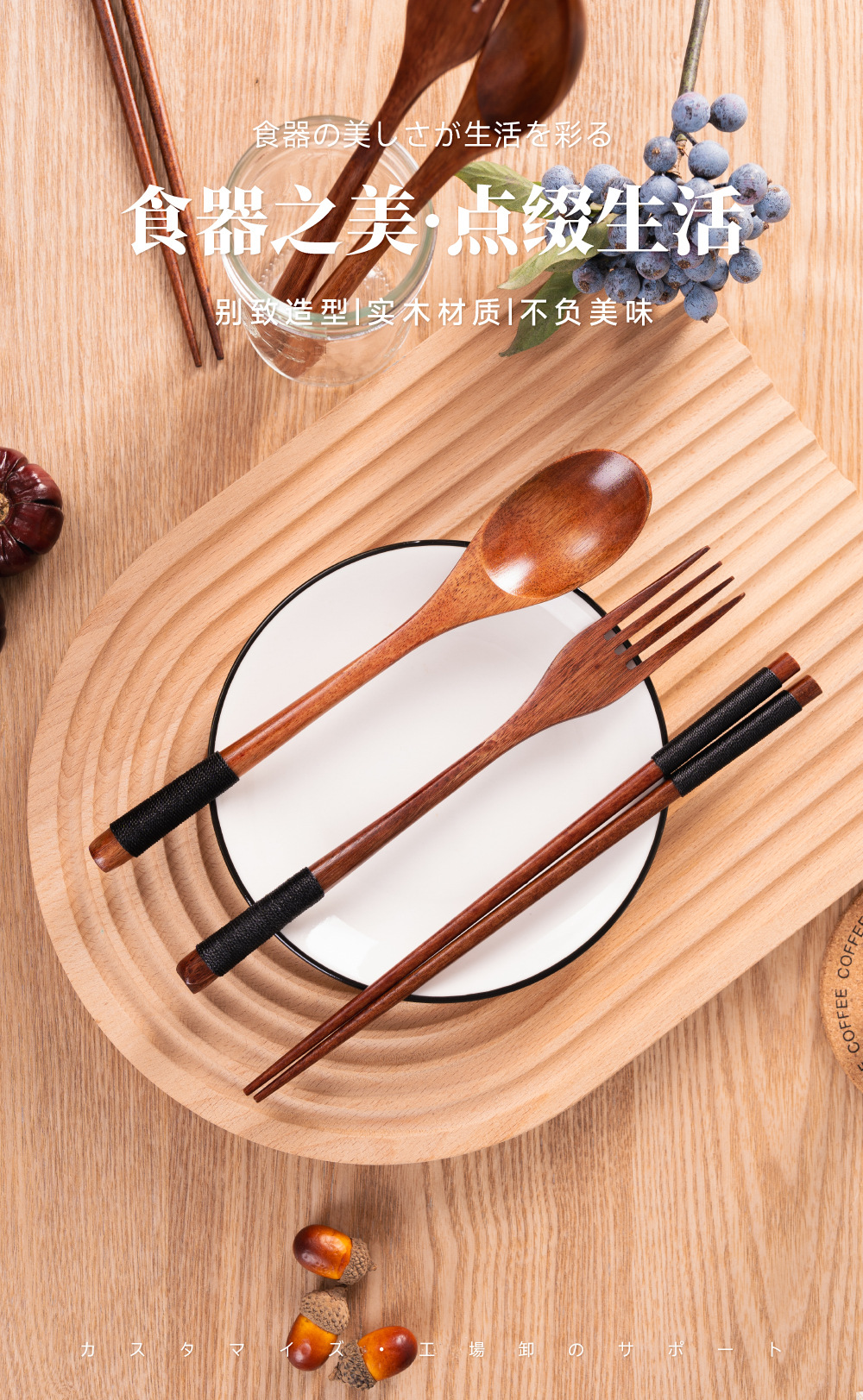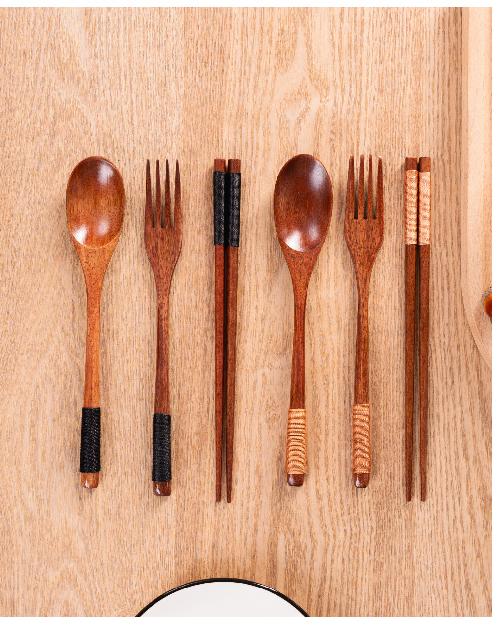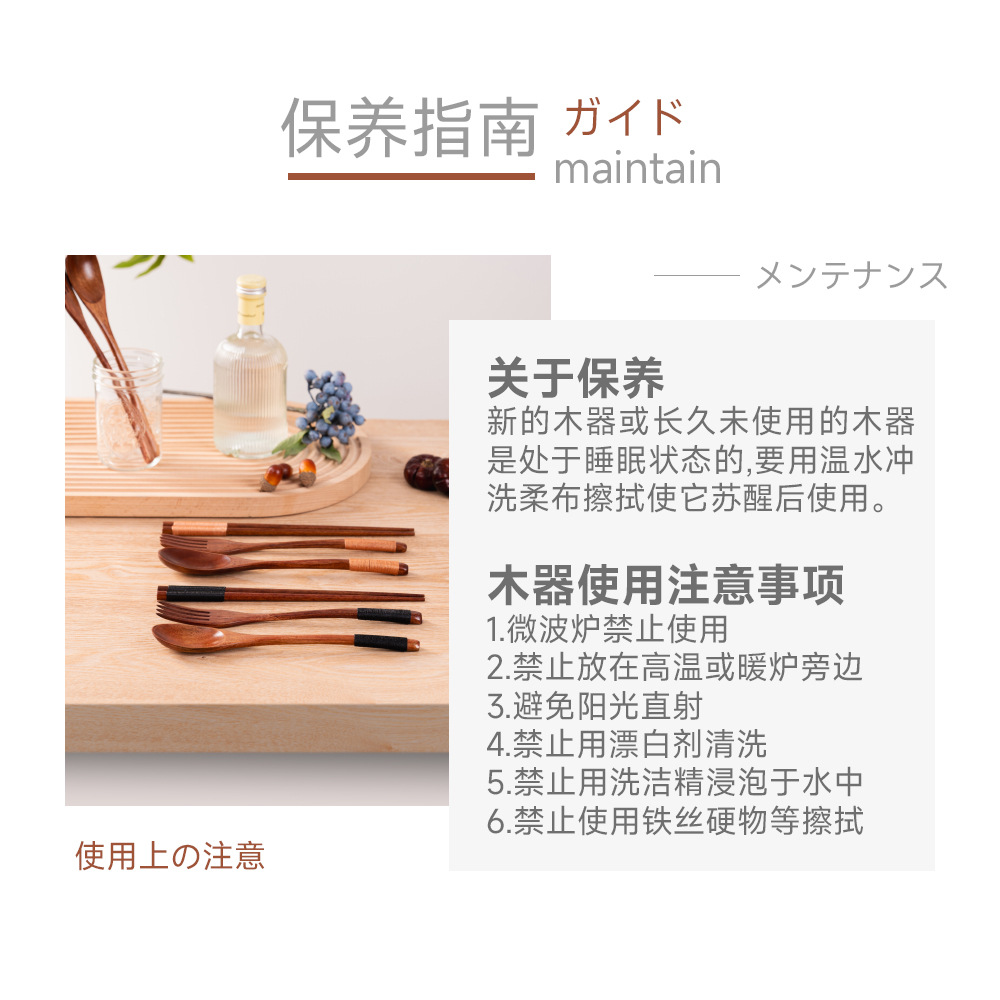 수저 세트 3종 일본식 원목 숟가락 포크 긴 손잡이 나무 숟가락 가정용 도매 편리한 식기