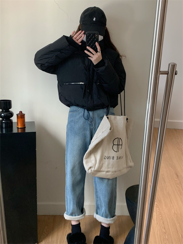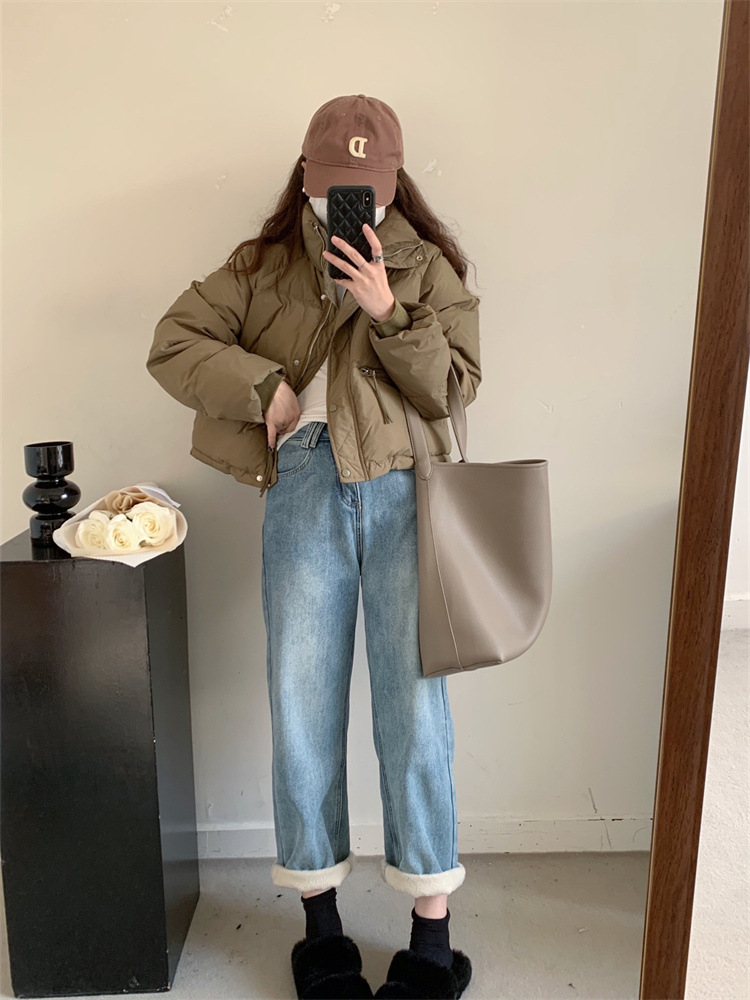 작은 여성들을 위한 한국 스타일의 부드러운 짧은 다운 재킷, 루즈한 새로운 스타일, 두꺼운 인기 빵 재킷