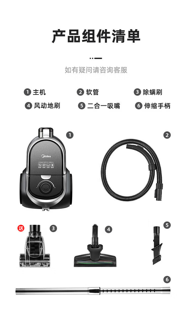 Midea 진공 청소기 가정용 C7 유선 휴대용 수평 높은 흡입 다중 사용 카펫 청소기 고출력 진공 청소기