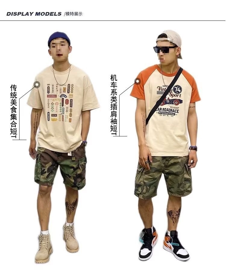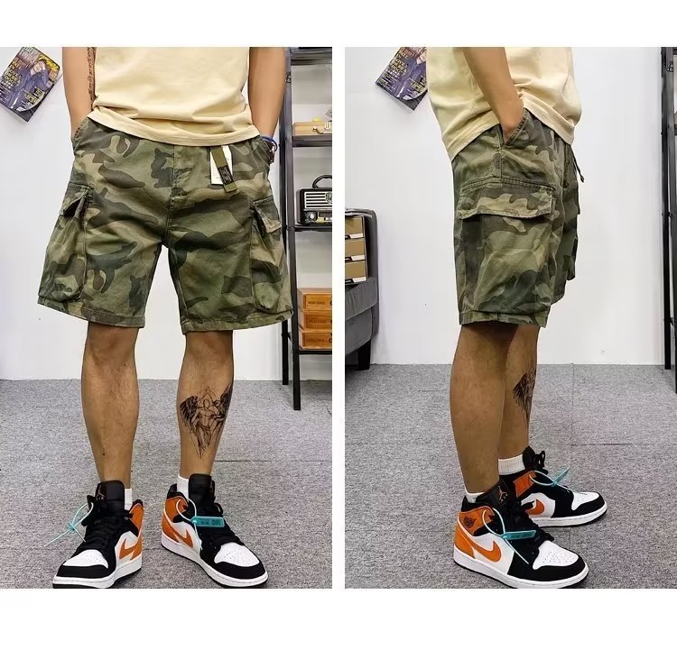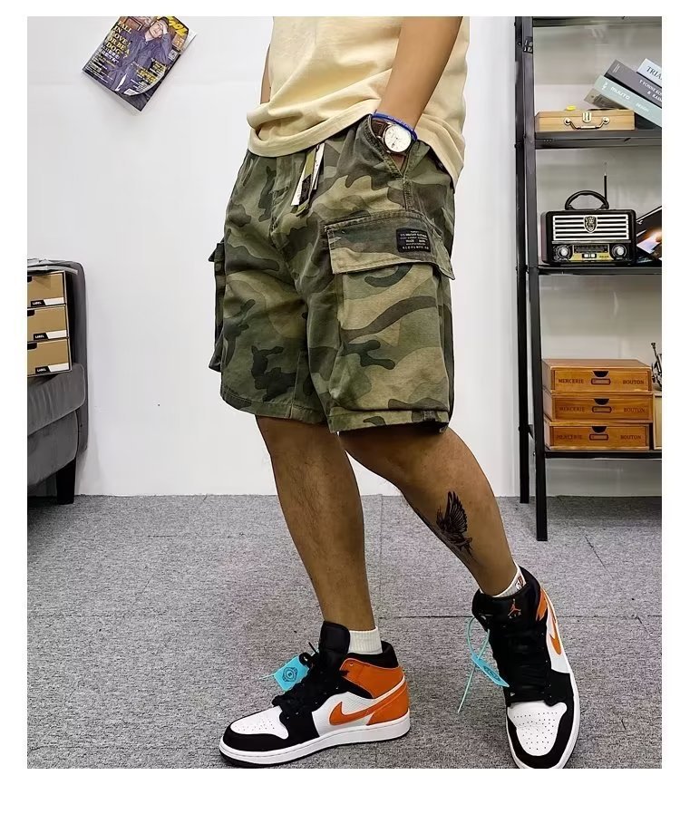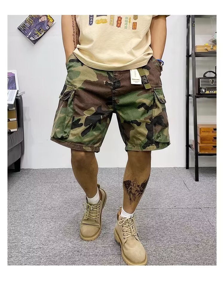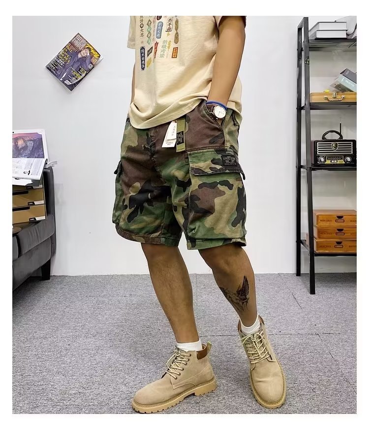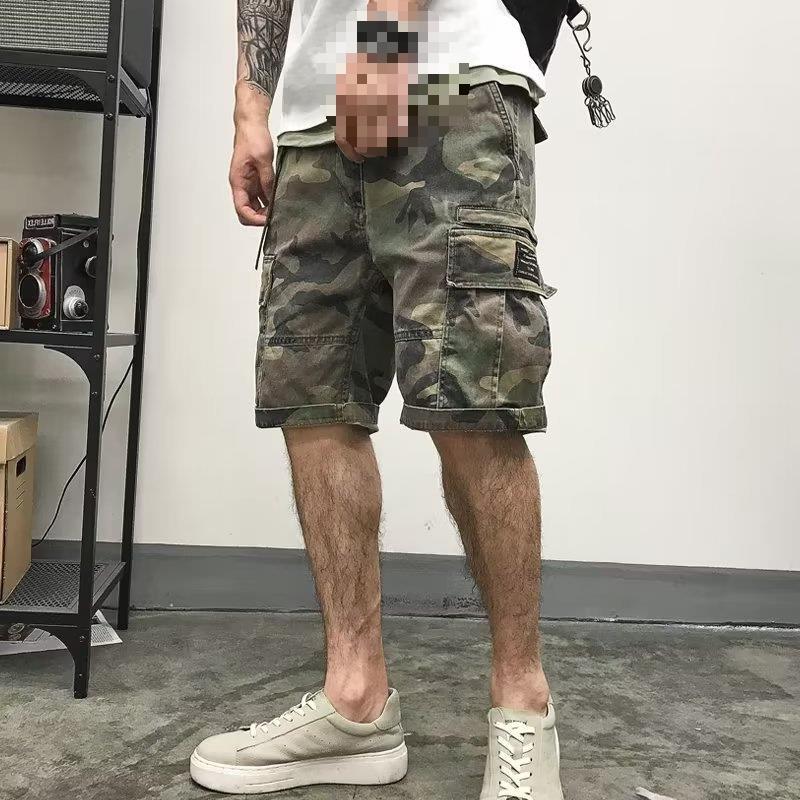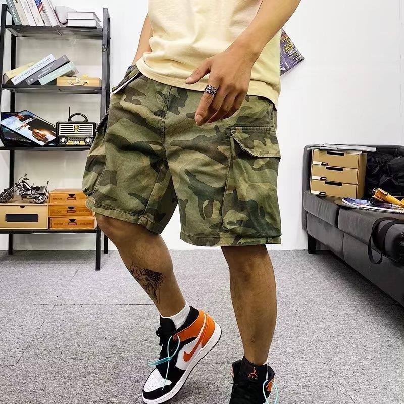 위장 작업 반바지 남자 유행 브랜드 스트레이트 유행 스포츠 바지 느슨한 5 점 캐주얼 바지 남자 바지 재고