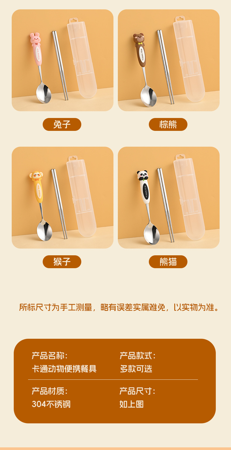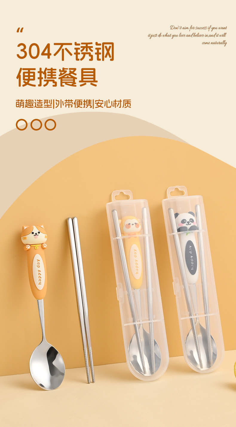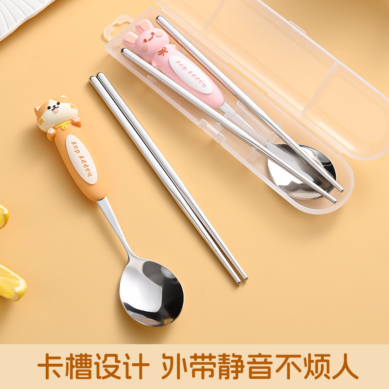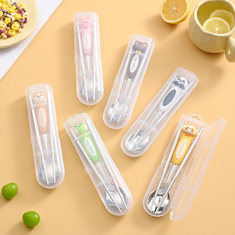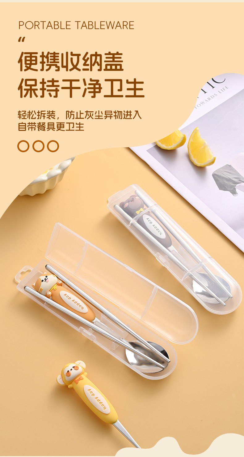 304 스테인레스 스틸 만화 휴대용 식기 세트 식품 학년 귀여운 동물 학생 어린이 숟가락 젓가락 세트