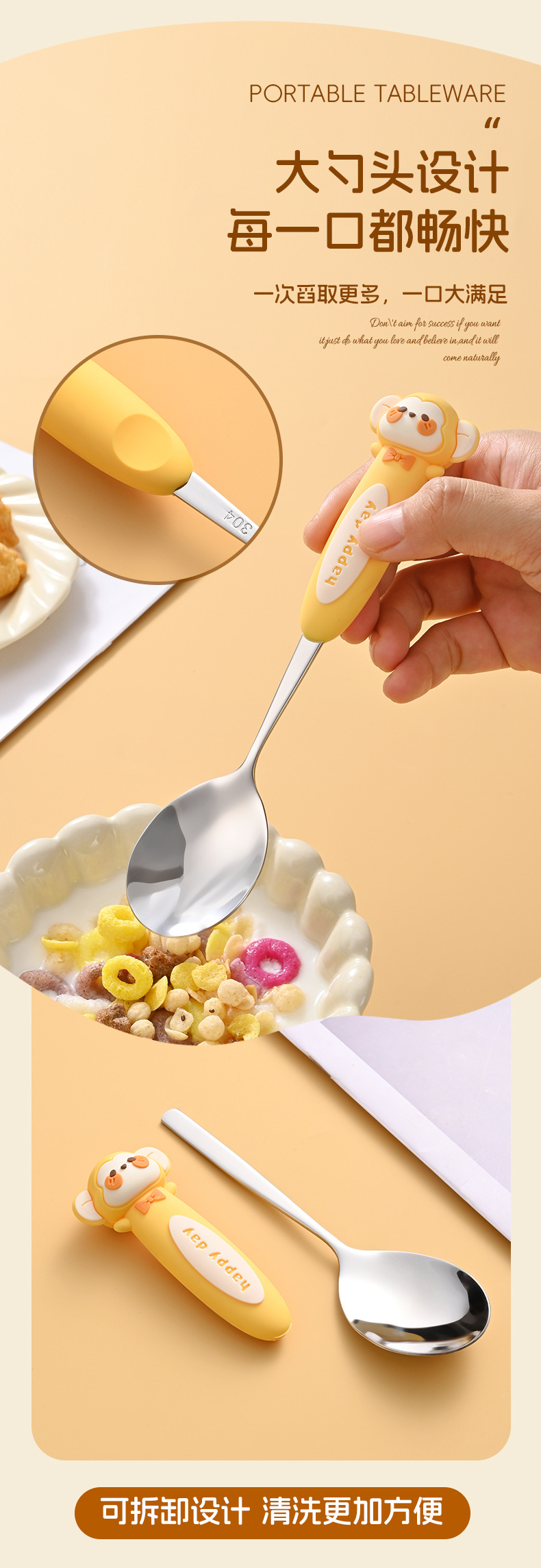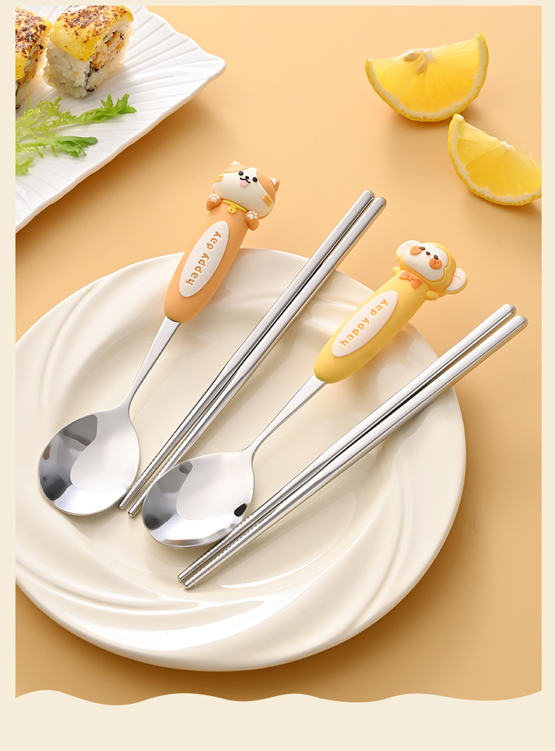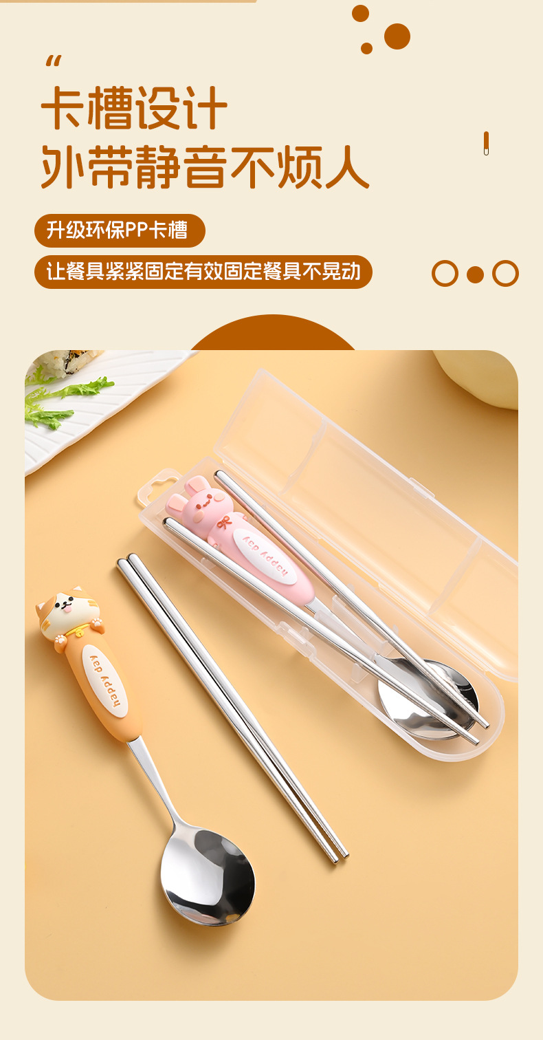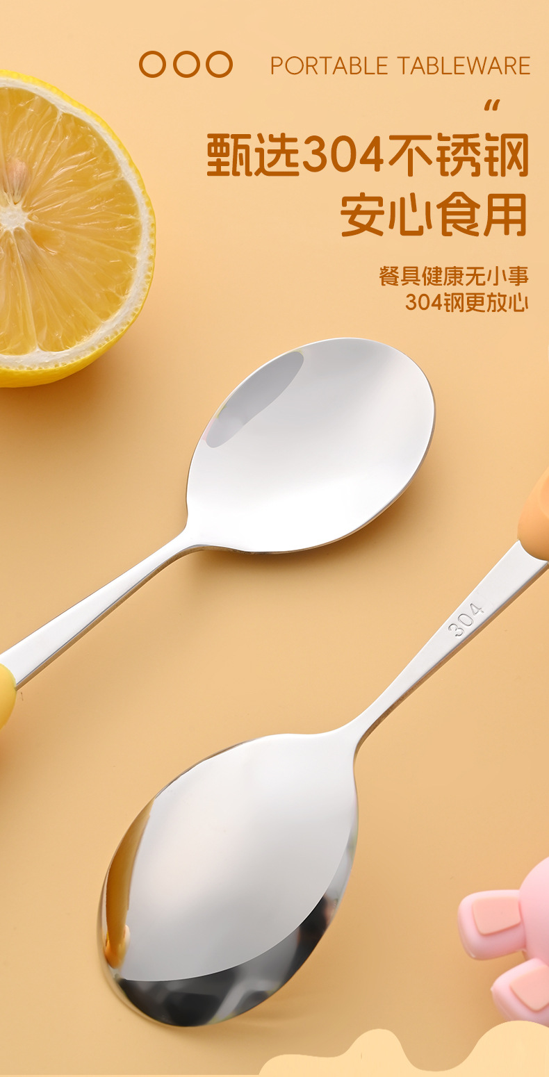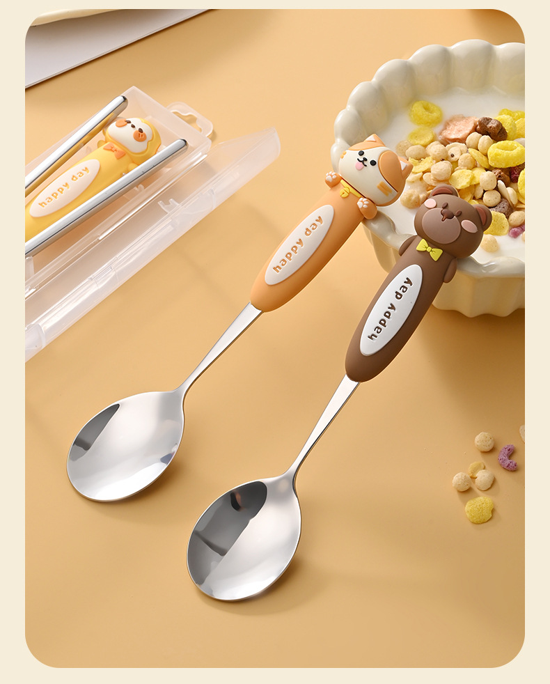 304 스테인레스 스틸 만화 휴대용 식기 세트 식품 학년 귀여운 동물 학생 어린이 숟가락 젓가락 세트