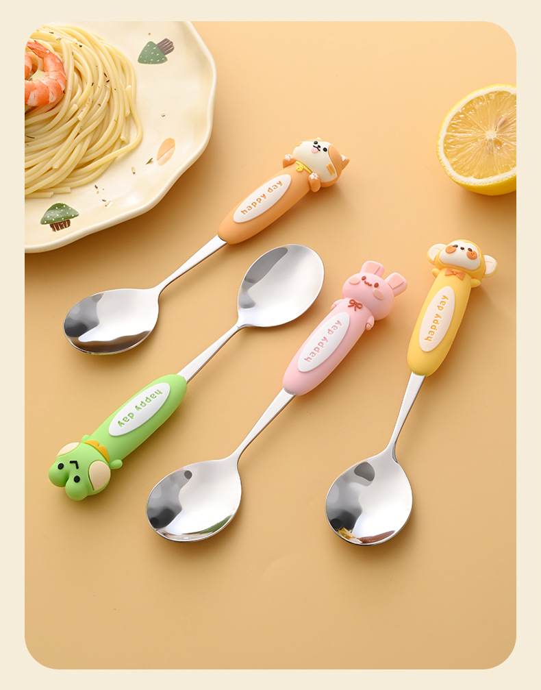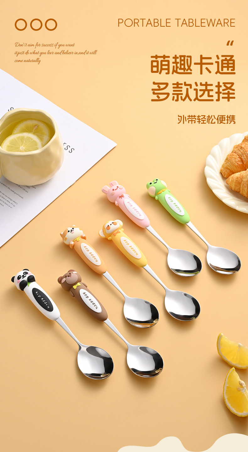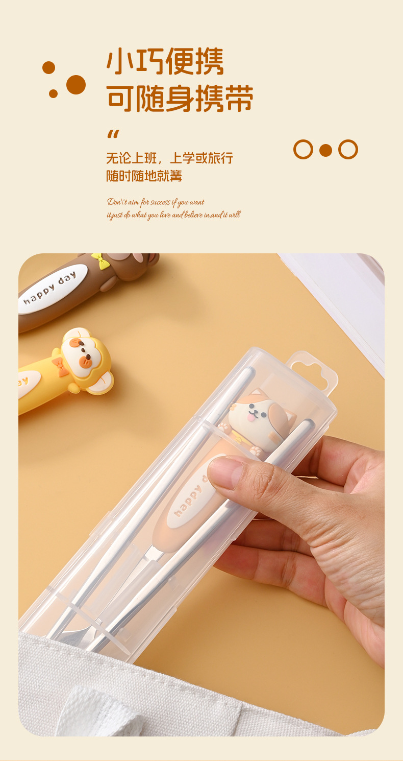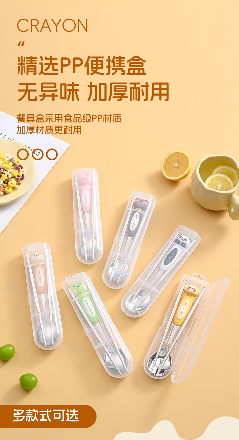 304 스테인레스 스틸 만화 휴대용 식기 세트 식품 학년 귀여운 동물 학생 어린이 숟가락 젓가락 세트