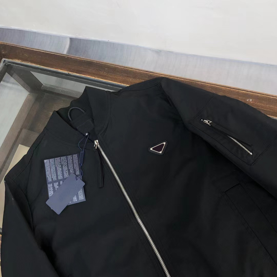 24 가을/겨울 새로운 삼각형 원래 표준 P 남자 재킷 야구 칼라 지퍼 재킷 카디건 단색 남자 캐주얼