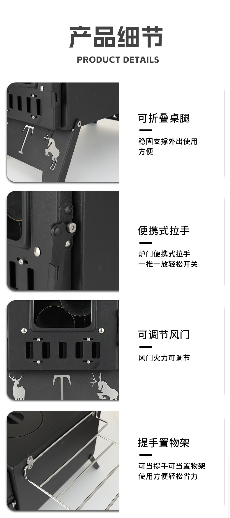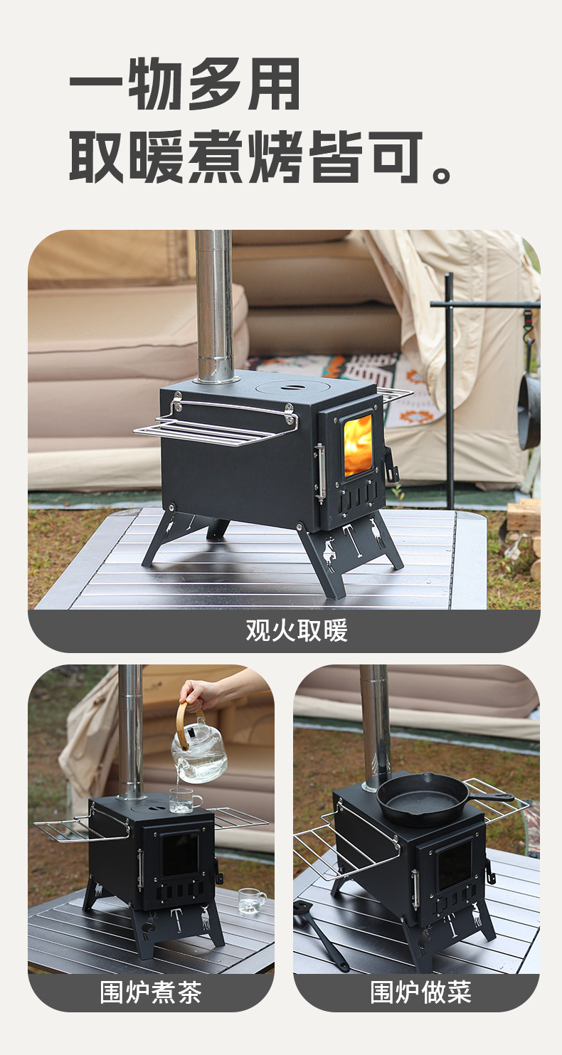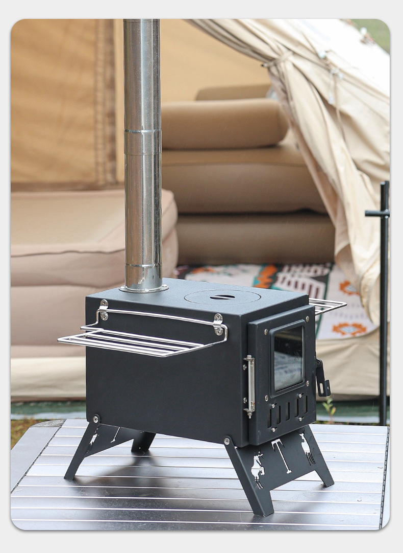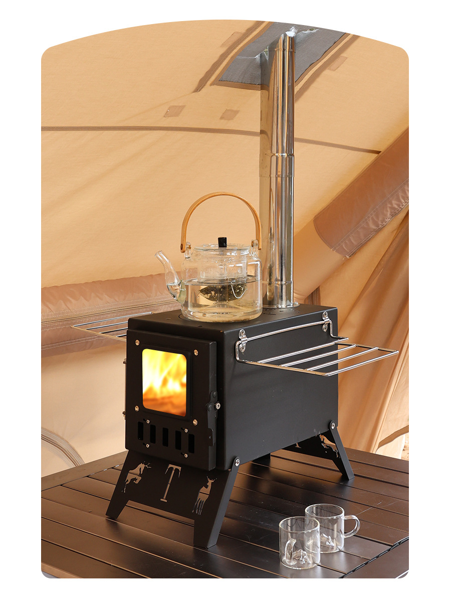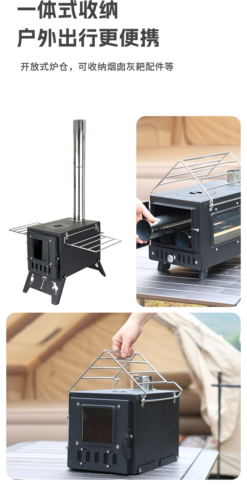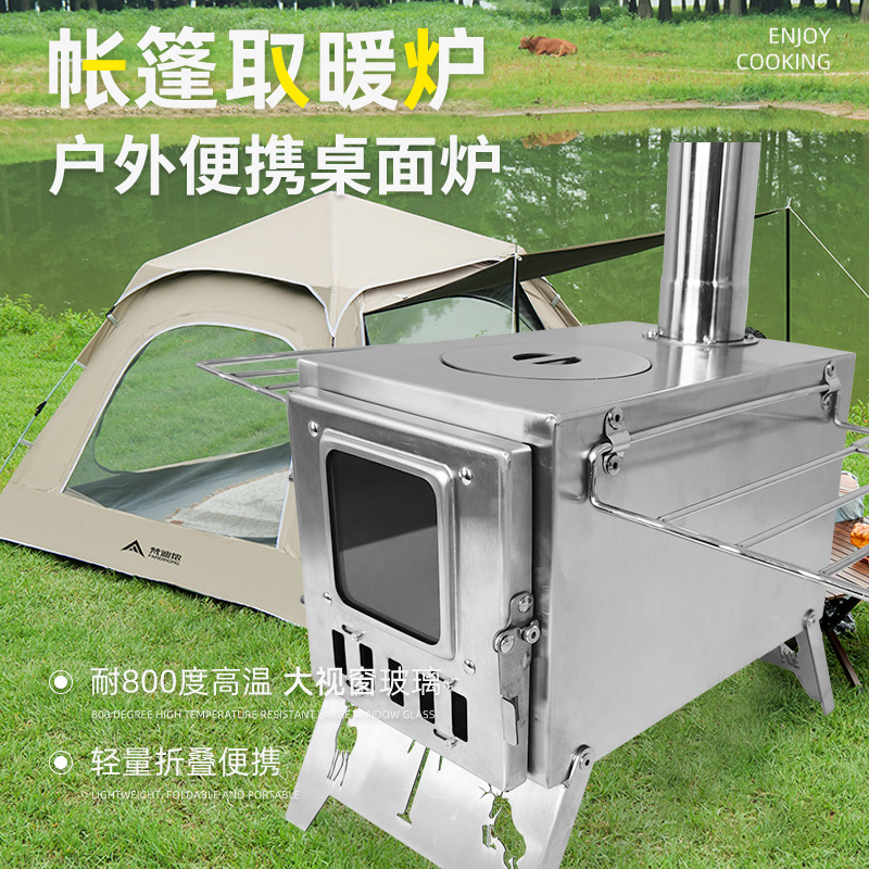 공급 야외 캠핑 통합 스테인레스 스틸 데스크탑 스토브 캠핑 텐트 난방 나무 난로 가정용 바베큐 스토브