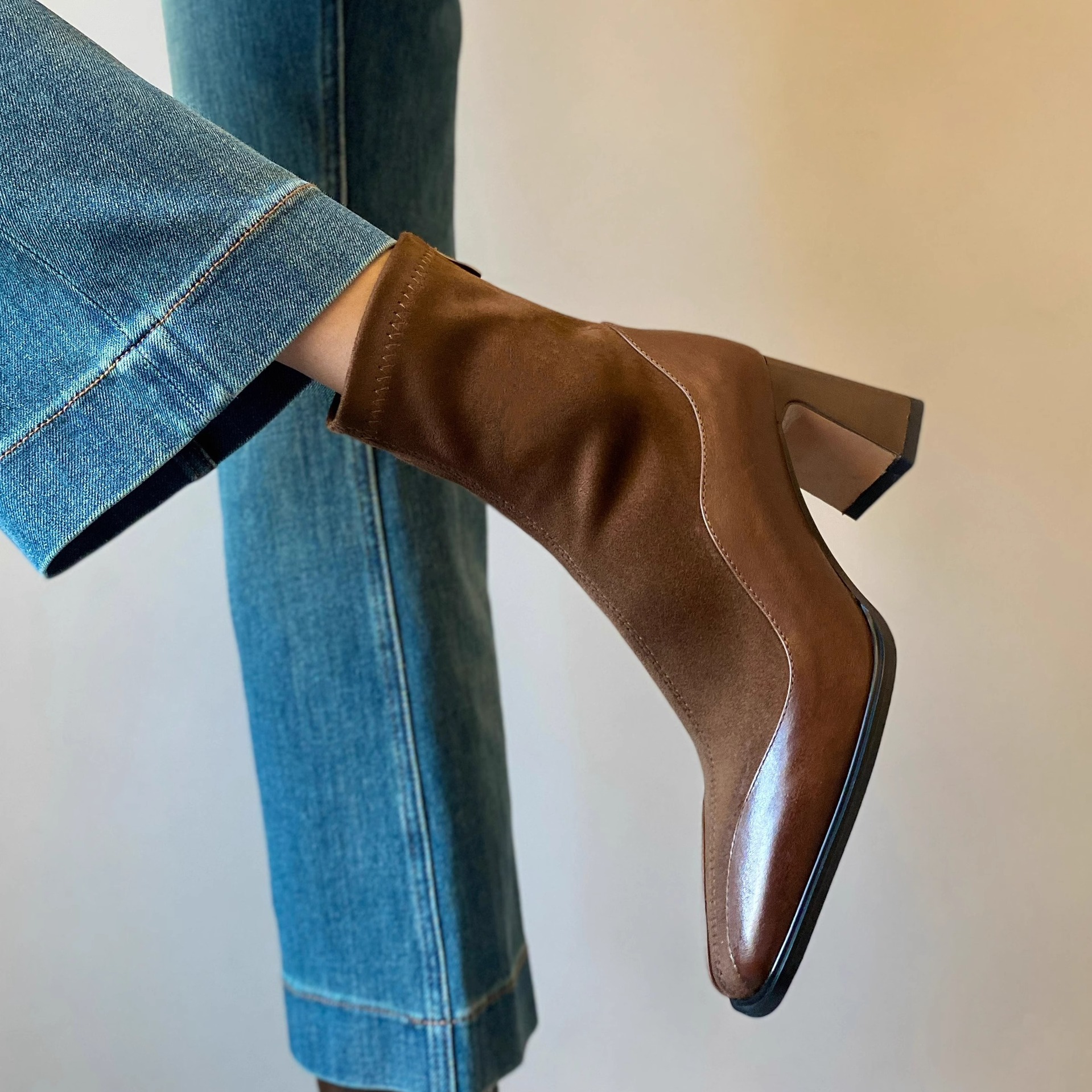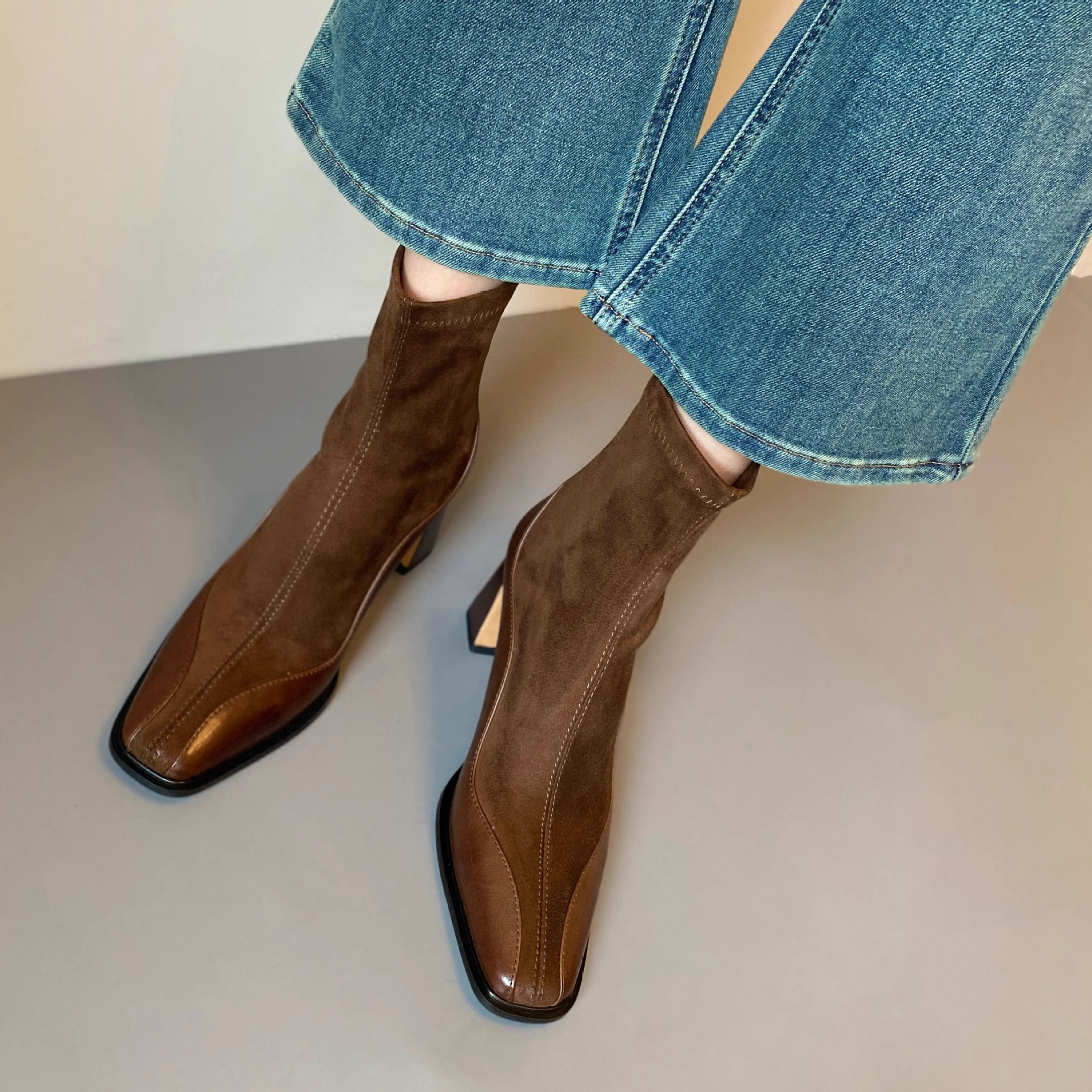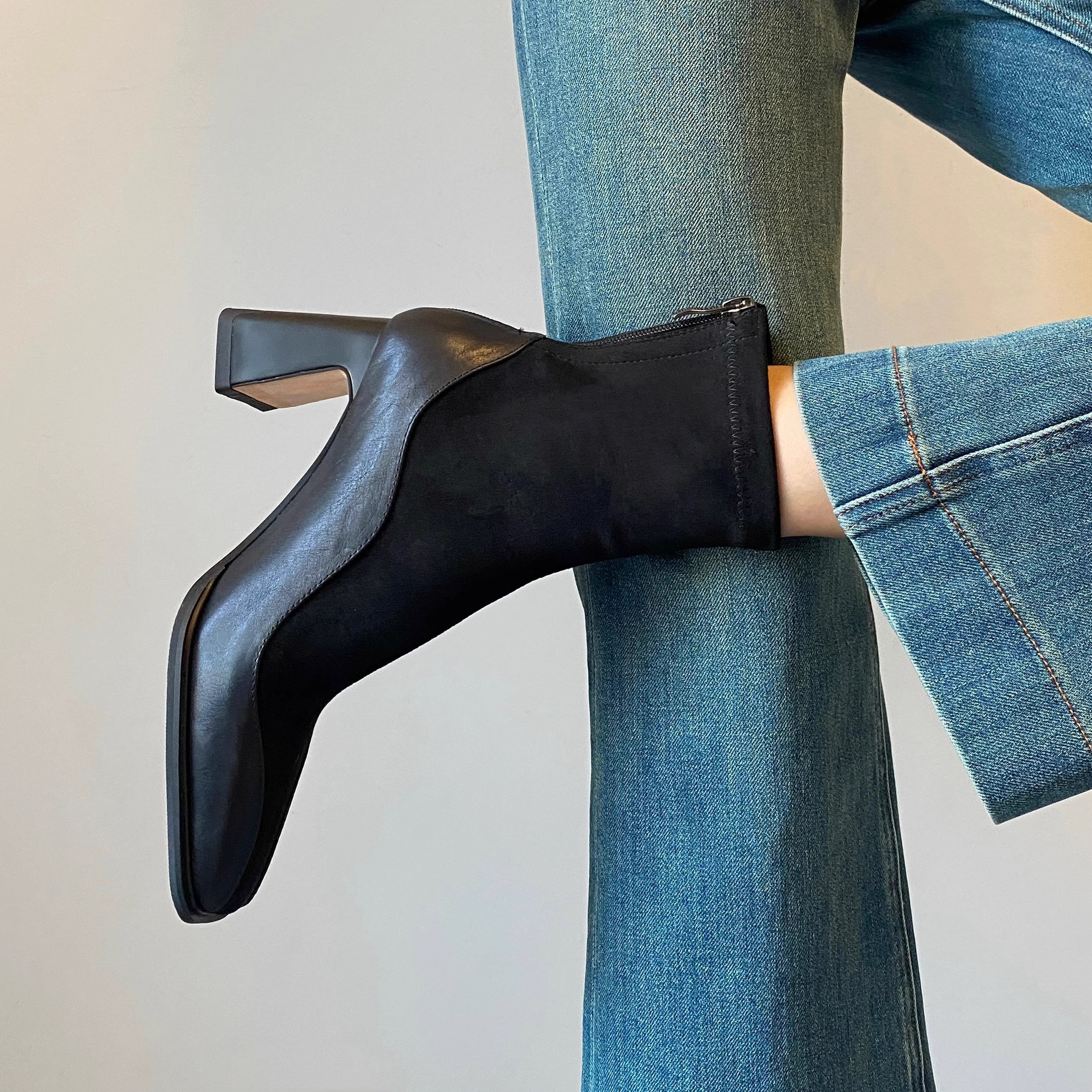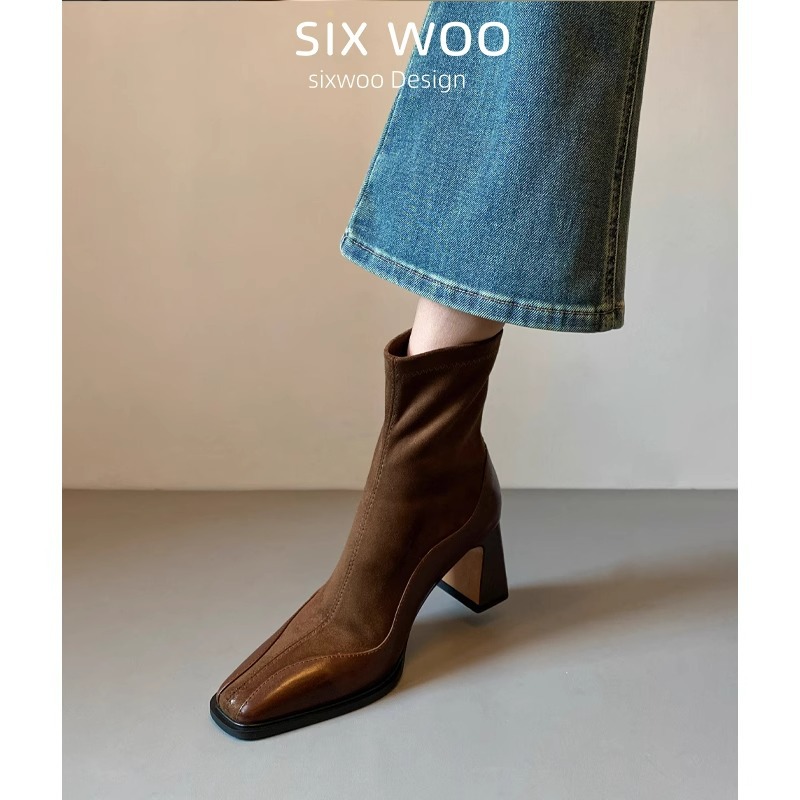 2026년 신상 겨울 프렌치 스타일 슬림 부츠, 하이힐 숏부츠, 스퀘어토 마틴 부츠, 여성용 슬림핏 레깅스 스타일 패션 부츠