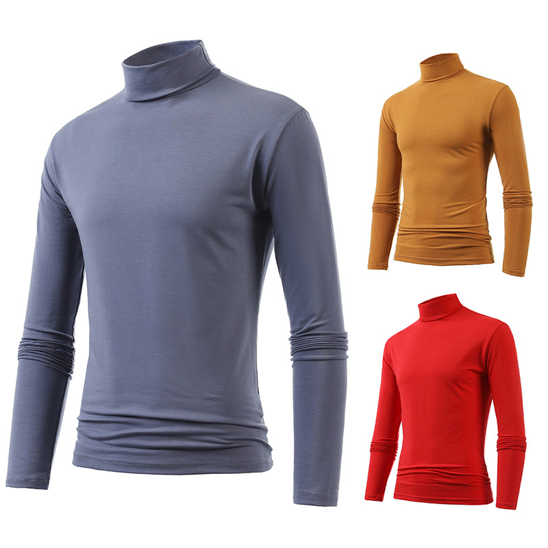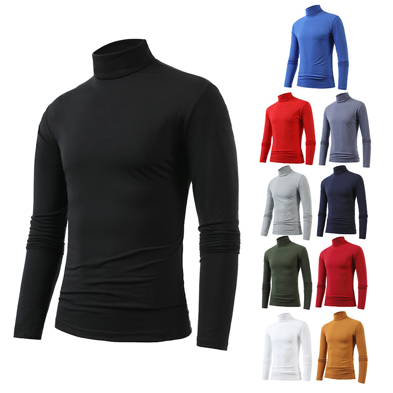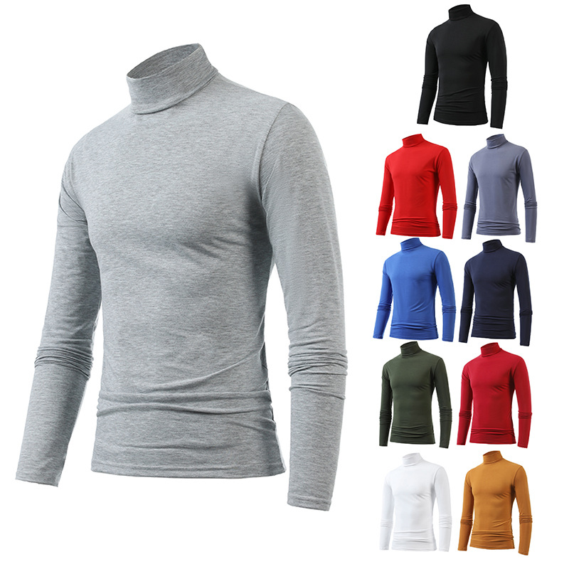 국경 간 유럽 코드 새로운 남성 캐주얼 솔리드 컬러 세미 하이 칼라 롱 슬리브 티셔츠 대외 무역 캐주얼 스포츠 티셔츠 베이스 셔츠