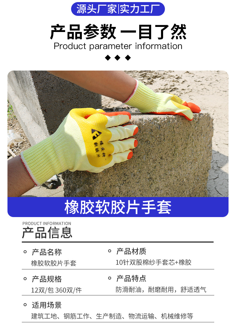 장갑, 노동 보호, 내마모성, 철근 작업자, 건설 현장 작업용 노동 보호 장갑, 부드러운 고무 장갑, 엄선된 유통