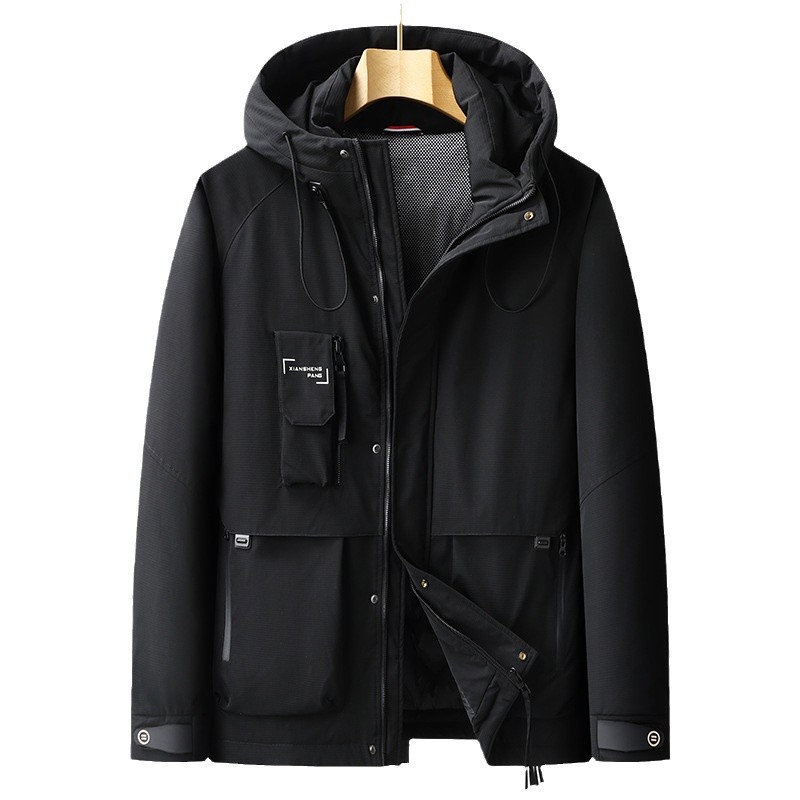 새로운 대형 작업복 캐주얼 다운 재킷 남성 블랙 골드 플러스 비료 플러스 따뜻한 재킷