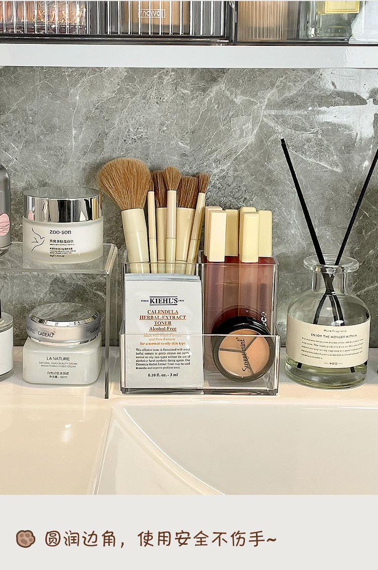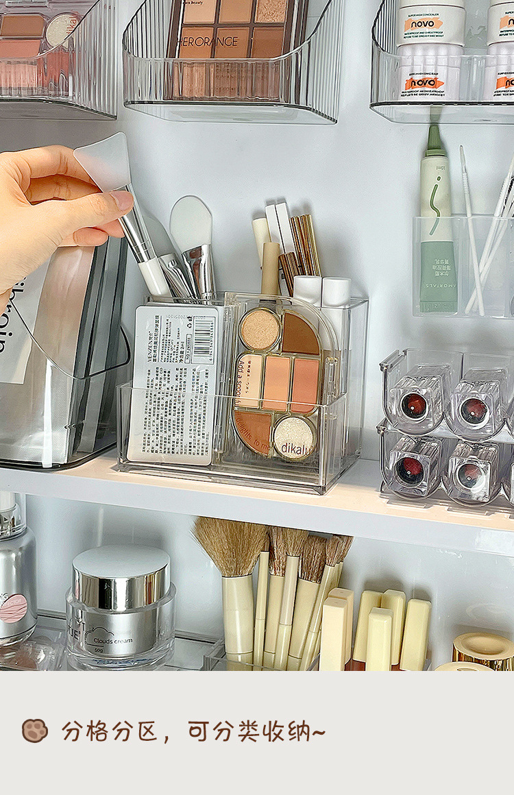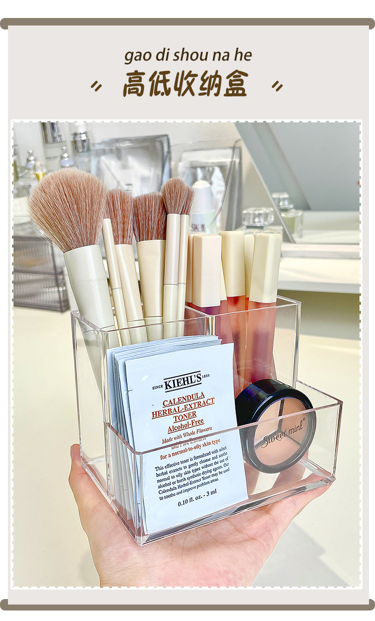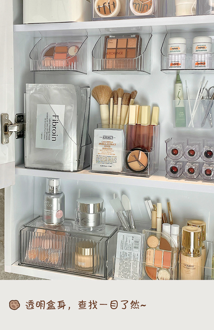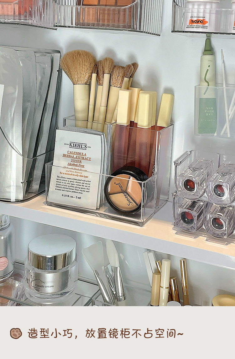 게으른 학교 아크릴 거울 캐비닛 저장 상자 작은 투명한 데스크탑 화장실 아이 섀도우 립스틱 메이크업 브러시 랙