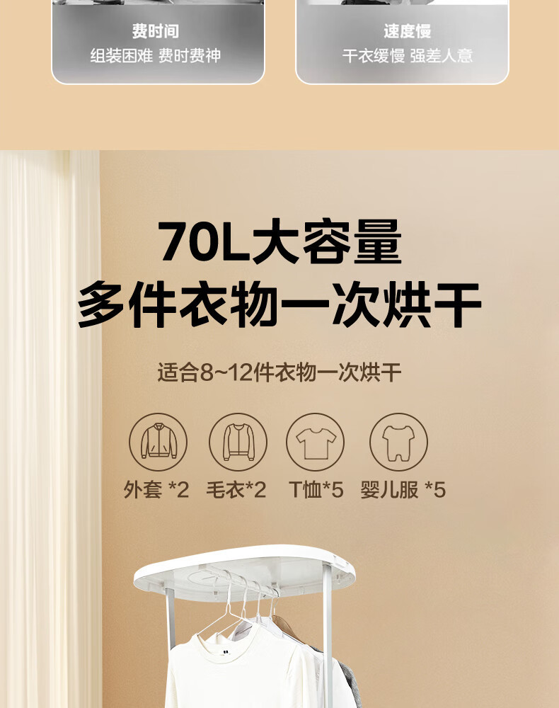 Midea 가정용 자동 건조기 작은 접이식 옷 건조기 걸이 휴대용 MZD70H0E