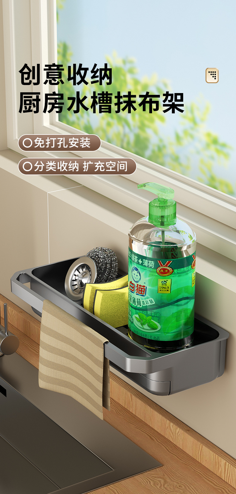 래그 건조 랙 펀치 프리 수도꼭지 스폰지 랙 주방 스토리지 랙 벽걸이 싱크 스토리지 아티팩트 가정용