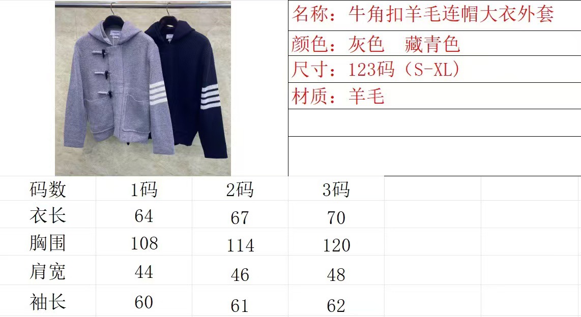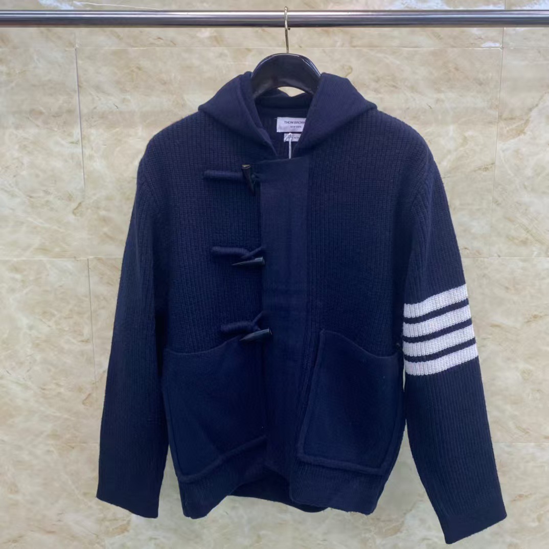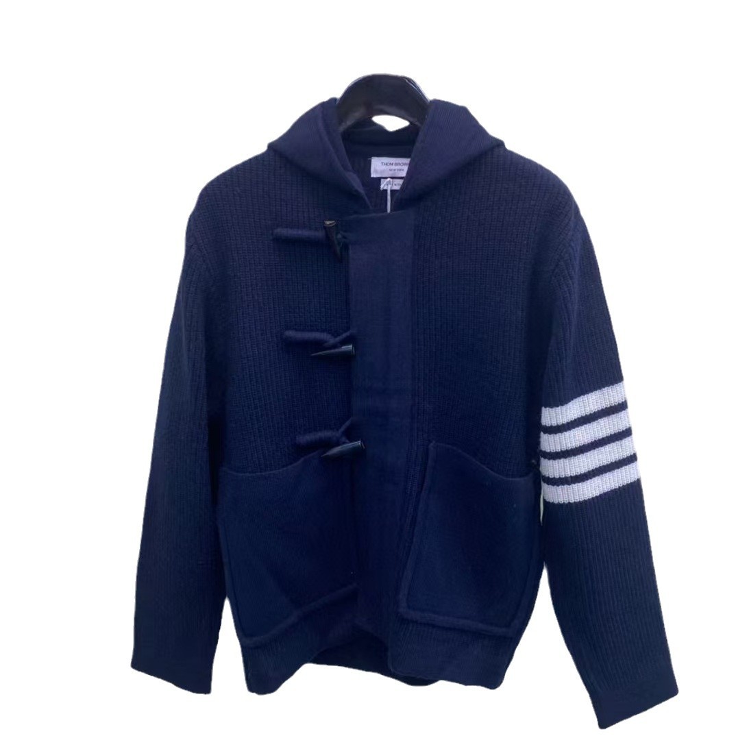 공장 직접 TB 톰 가을과 겨울 새 코너 버클 울 후드 코트 남성과 여성의 캐주얼 편안한 코트