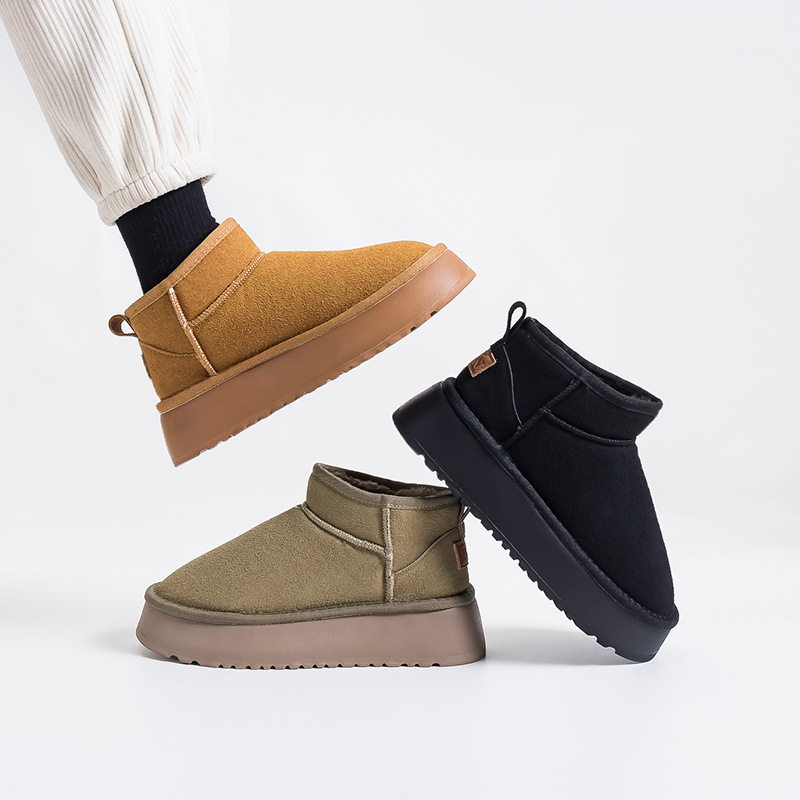 A9845 두꺼운 밑창 스노우 부츠 여성 2024 겨울 새로운면 신발 기모 두꺼운 따뜻한 부츠 가을과 겨울 다용도