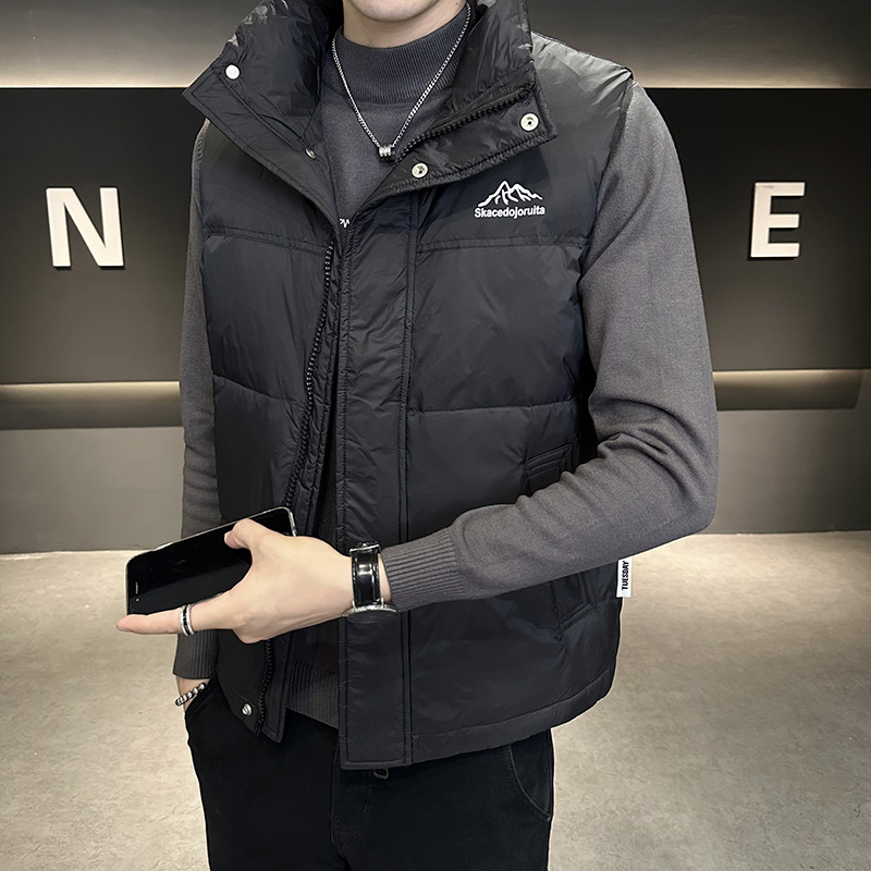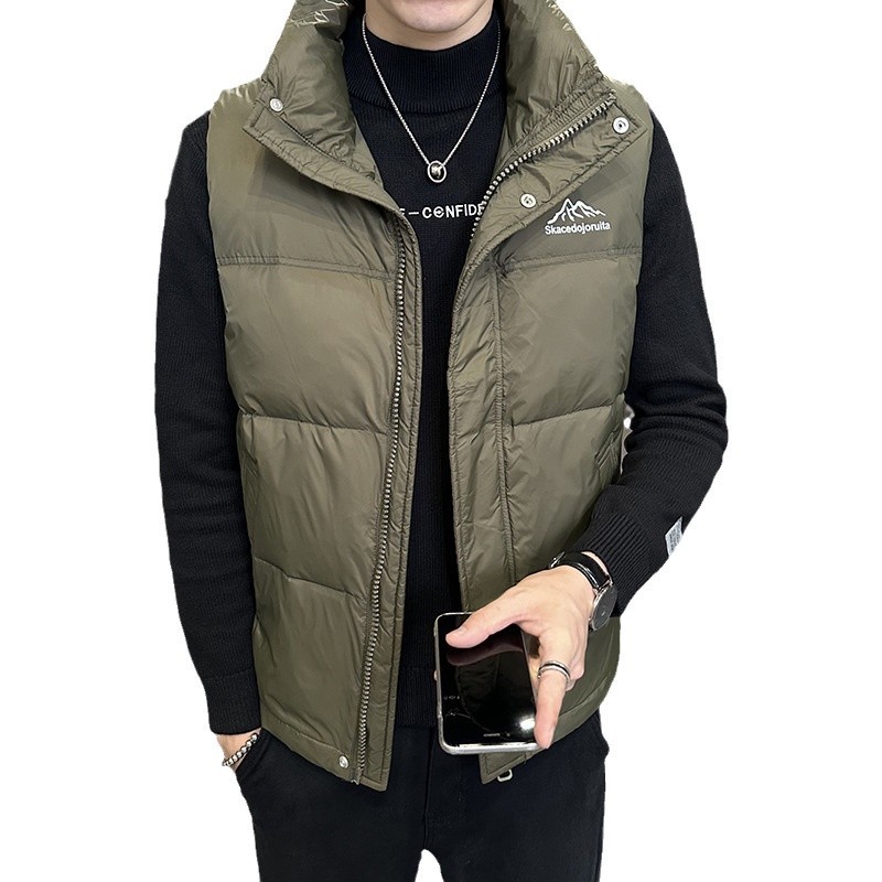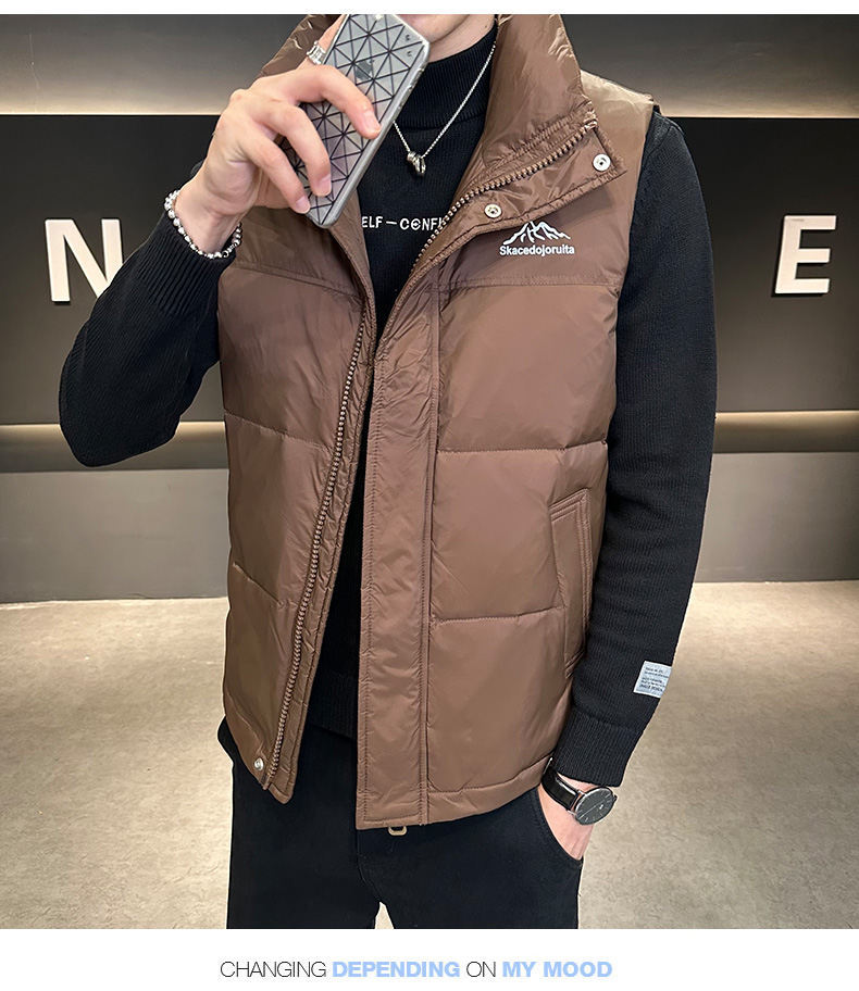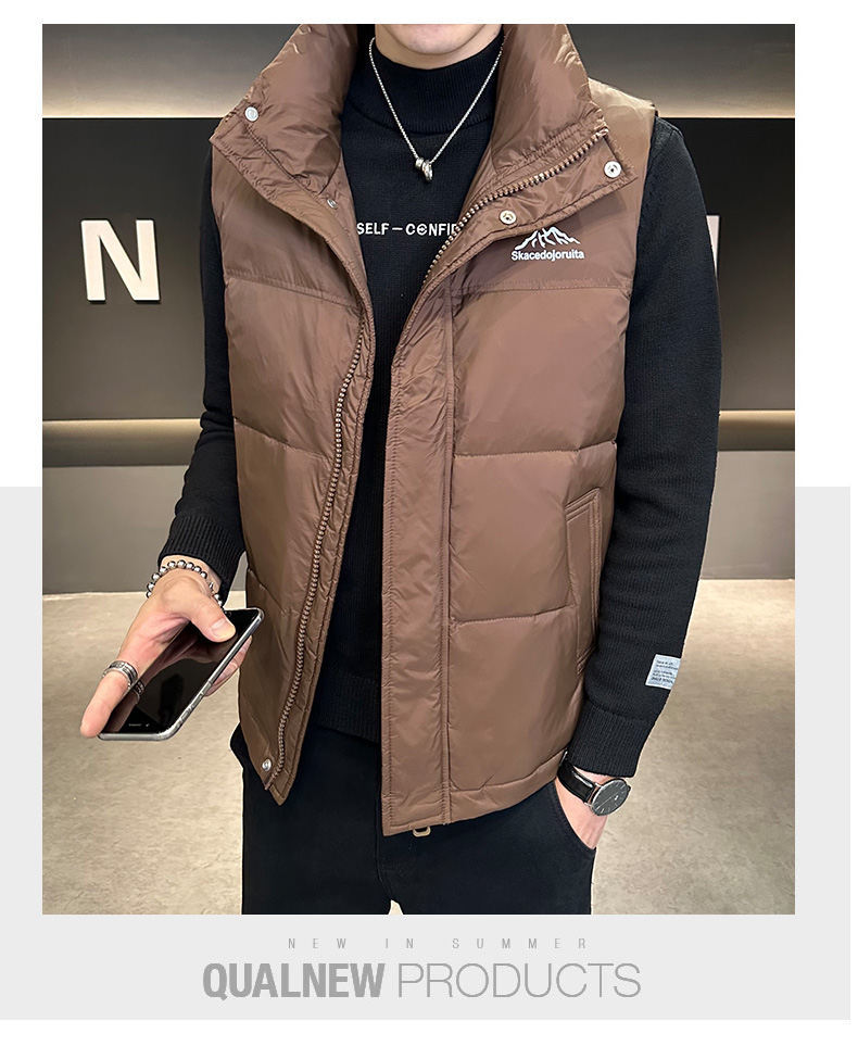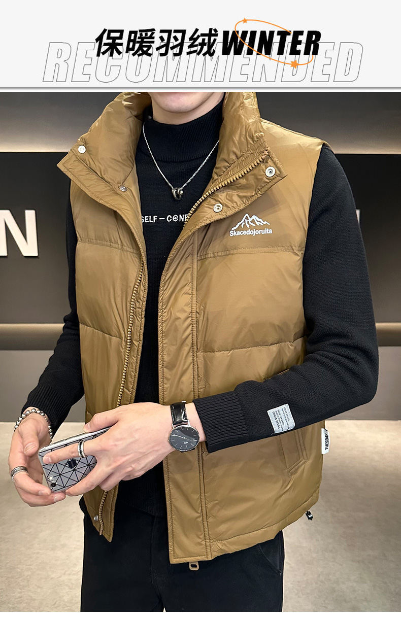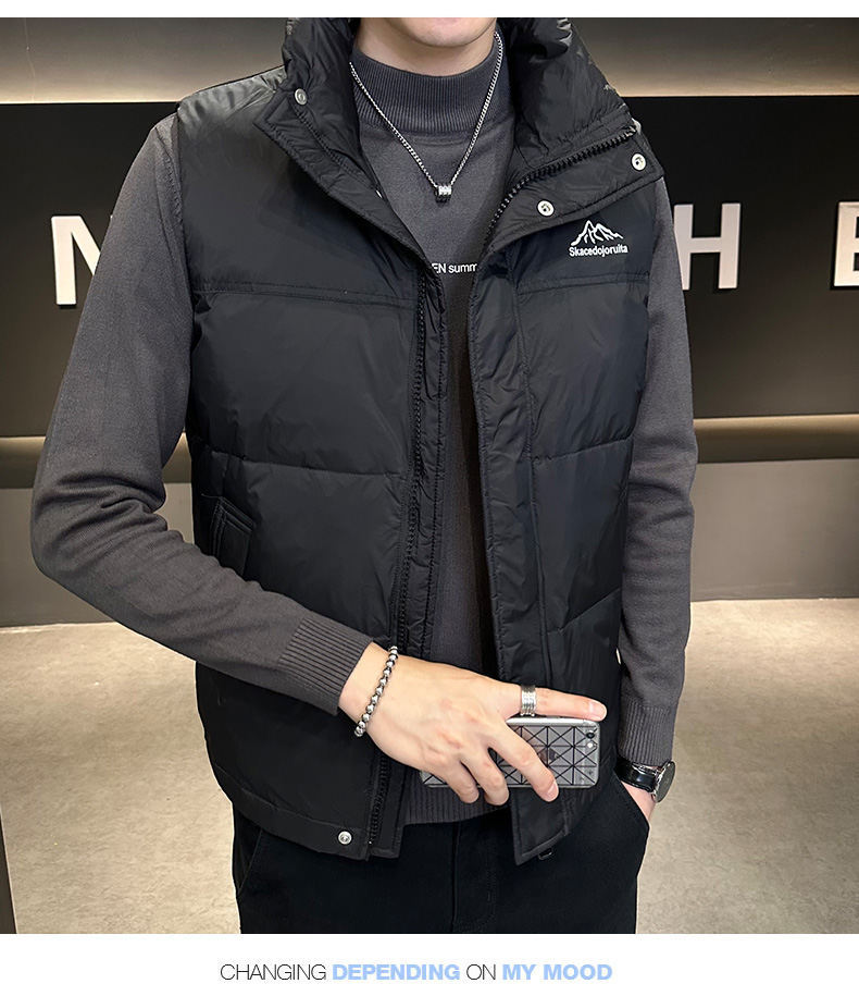 다운 아우터 조끼 젊은 남성 캐주얼 2024 패션 스탠드 칼라 새로운 따뜻한 재킷