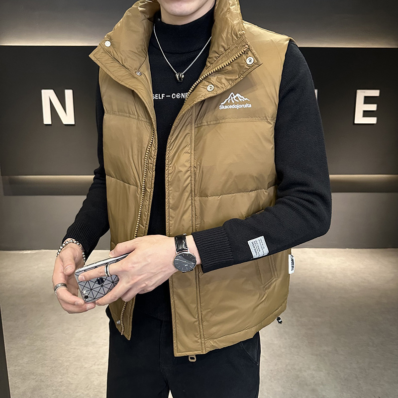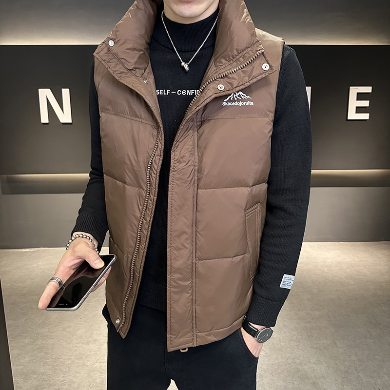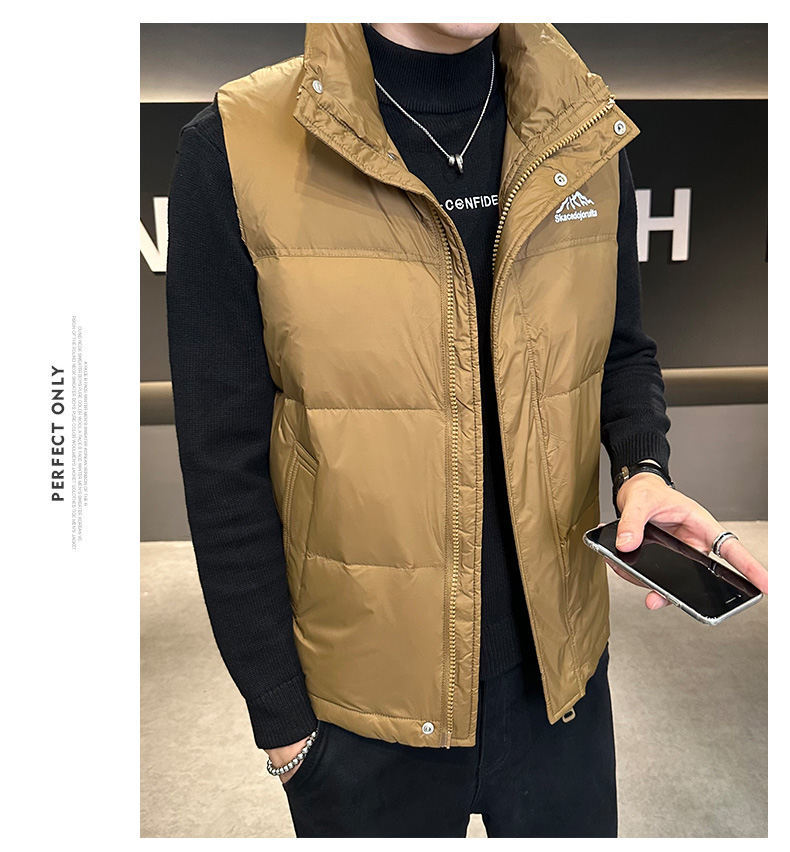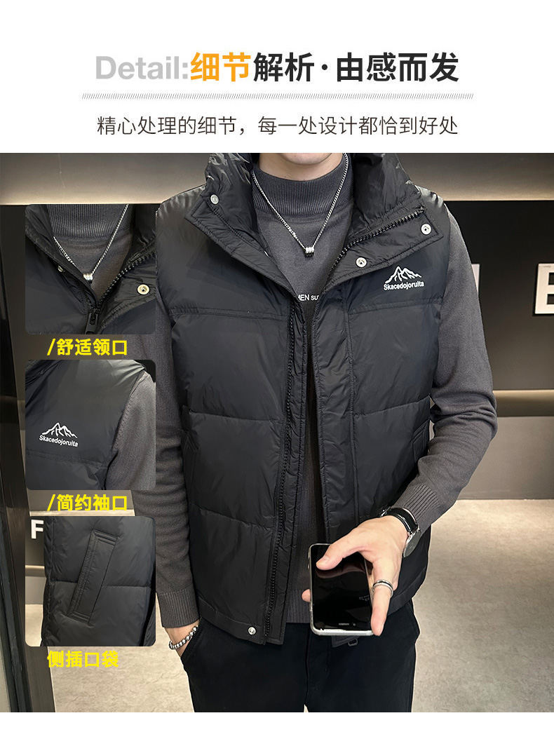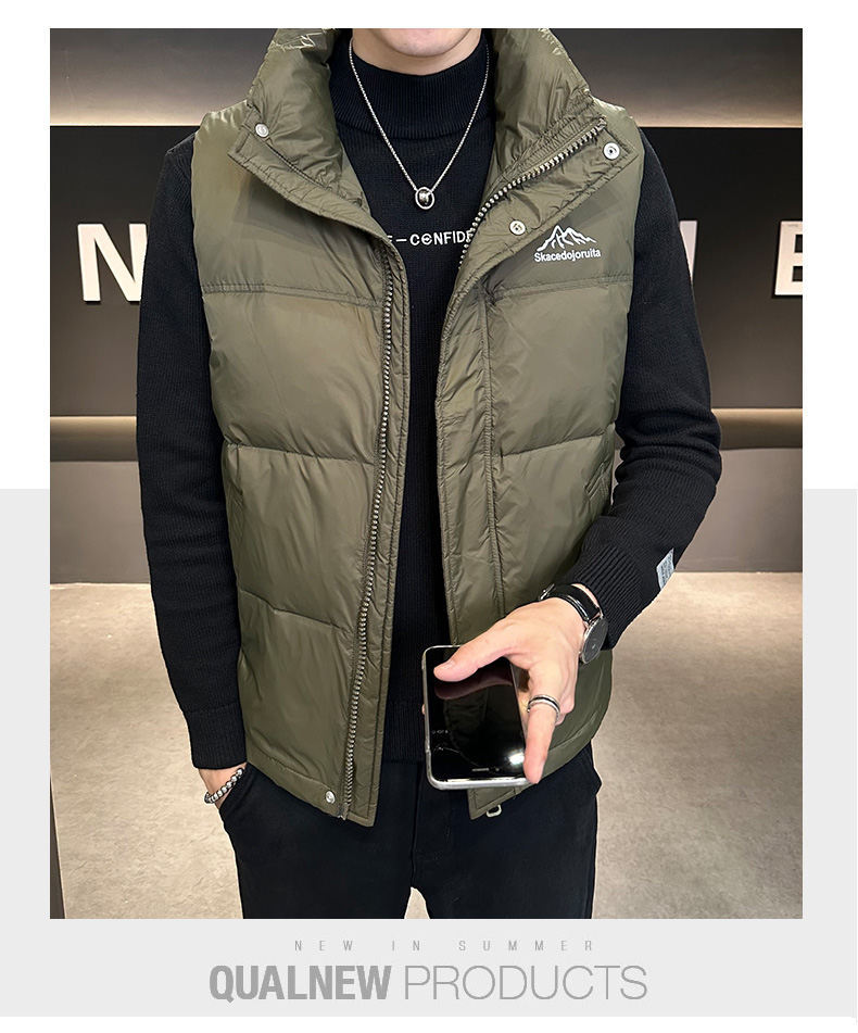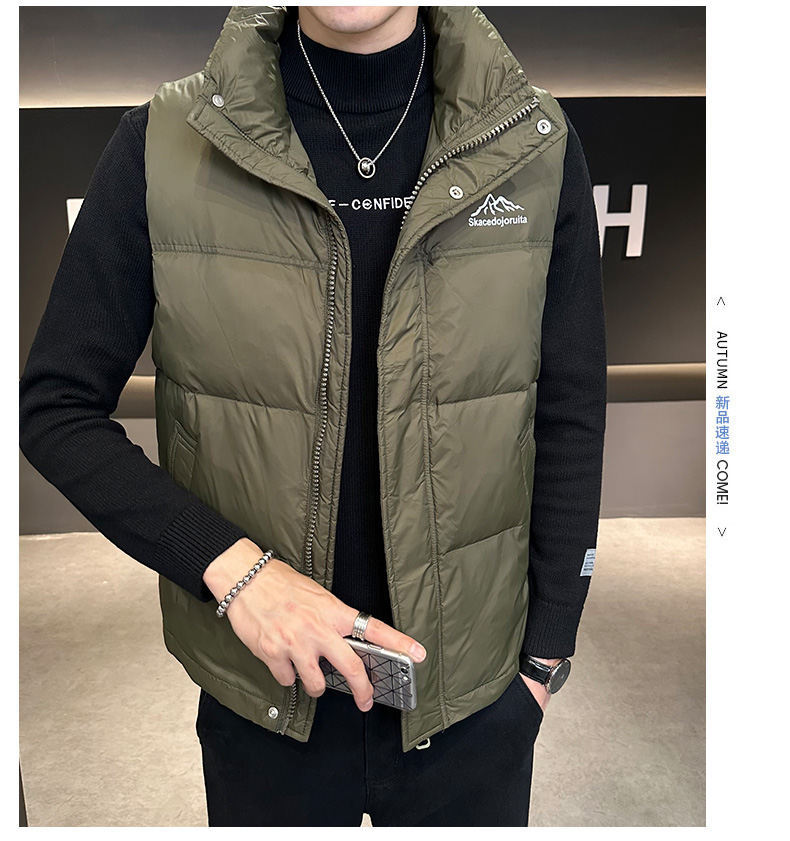 다운 아우터 조끼 젊은 남성 캐주얼 2024 패션 스탠드 칼라 새로운 따뜻한 재킷