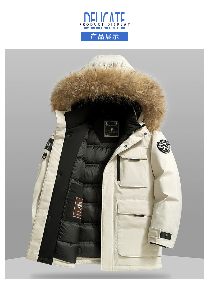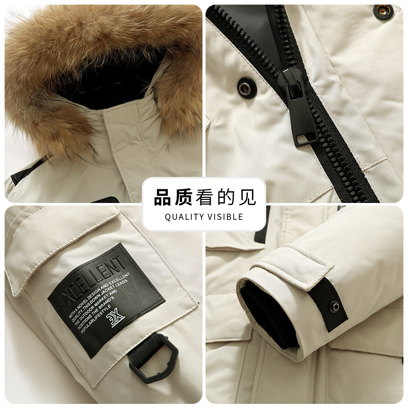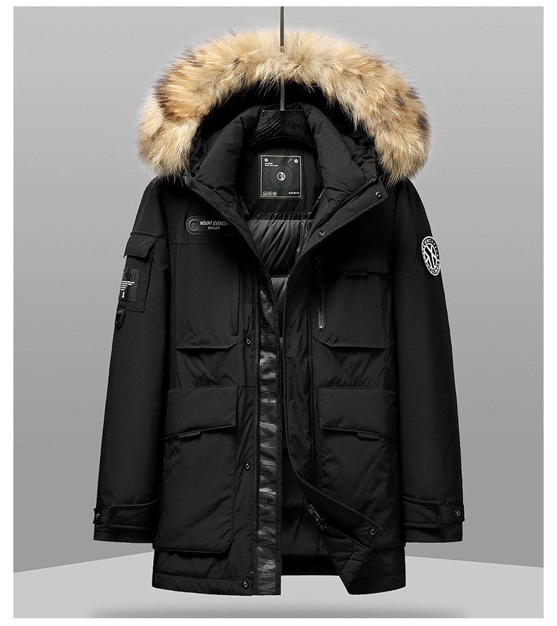 【극한 추위에도 견디는 두꺼운】고급 겨울 다운 재킷 남녀공용 탈부착 가능한 밍크 퍼 칼라 아웃도어 파카 스타일 보온 재킷