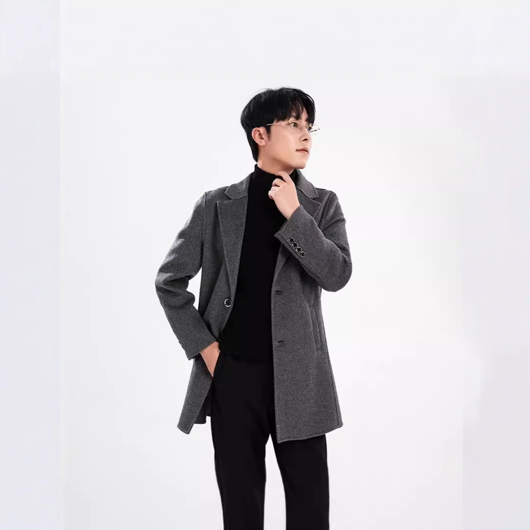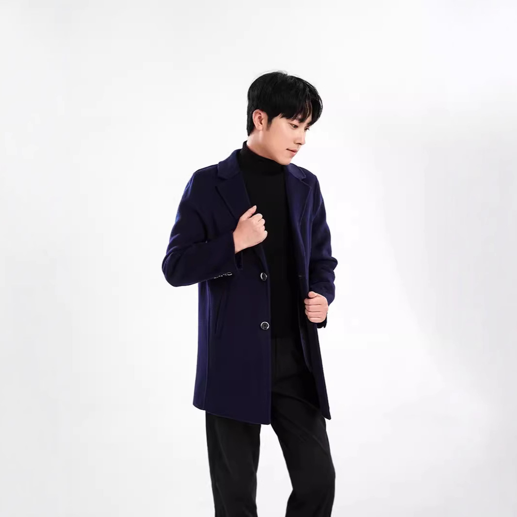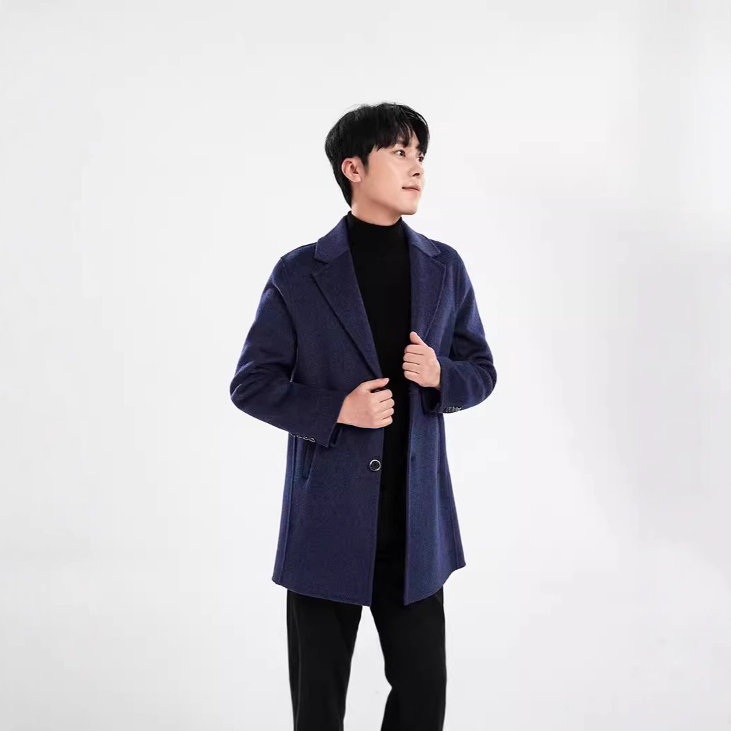 남자 단색 중장 양면 네오니 코트 2024 세트 가을 및 겨울 새 코트 탑