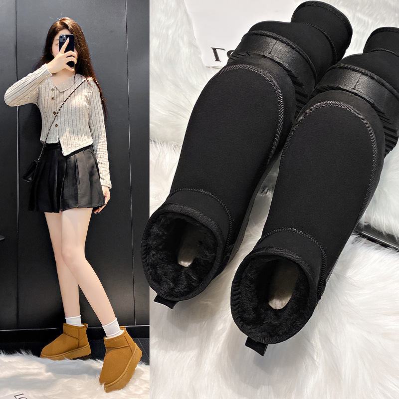 국경 간 조커 기모 스노우 부츠 여성 2024 겨울 신입생 한국판 따뜻한 캐주얼 두꺼운 밑창 면화 도매
