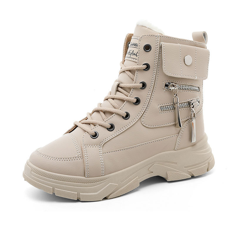W2579 새로운 2024 겨울 한국 여성 단색 기모 면화 스노우 부츠 캐주얼 따뜻한 면화 증가
