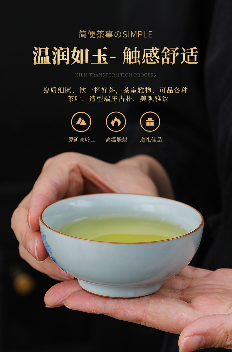 루야오 공푸차 세트, 다도용 차그릇, 큰 개인용 컵, 도자기 티컵, 루자기 싱글컵, 청자기