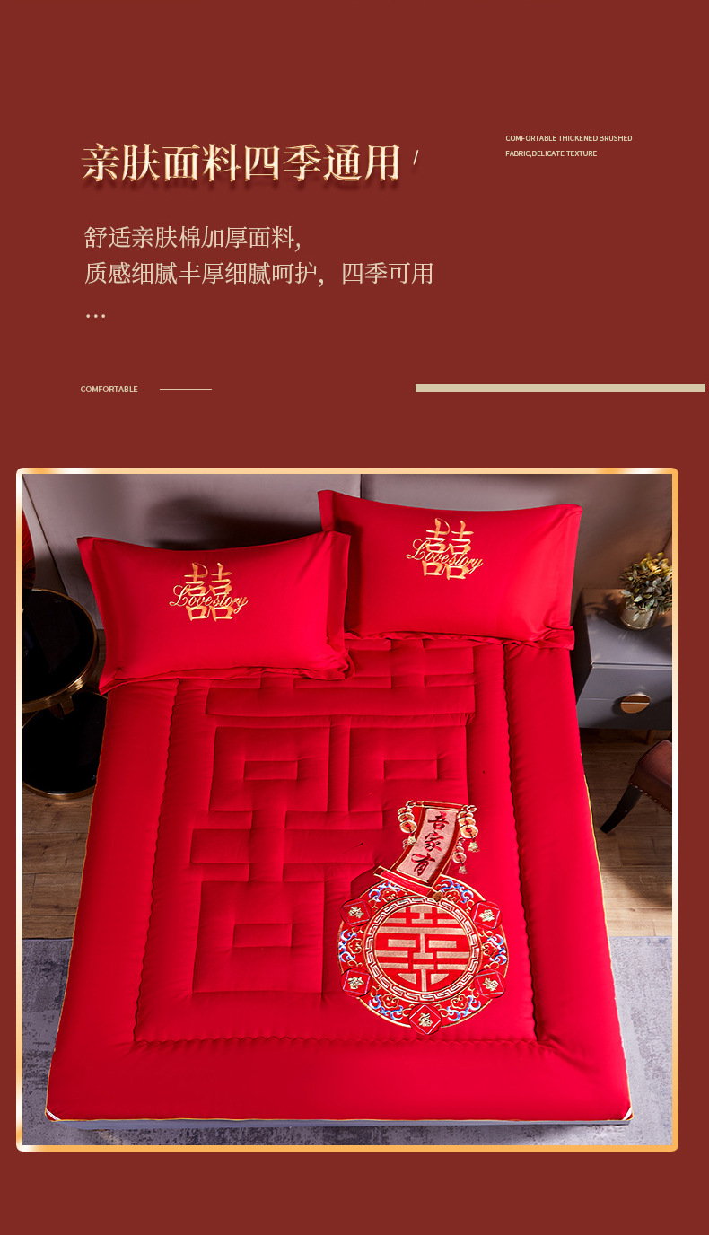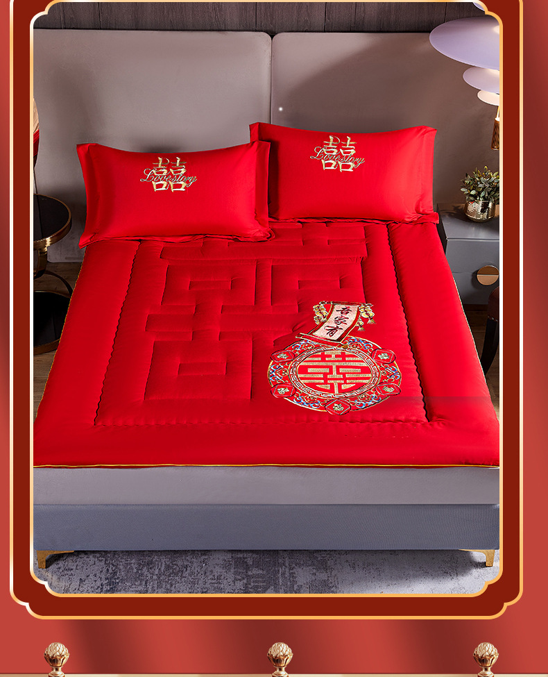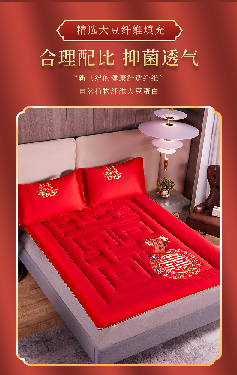 웨딩 홈 큰 빨간 침대 매트리스 웨딩 침대 매트리스 축제 1.8m 새 집 웨딩 매트리스 신부 앉아 축복받은 침구
