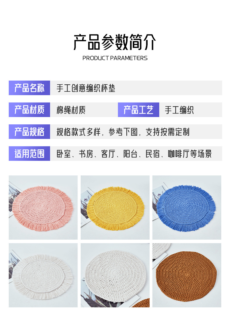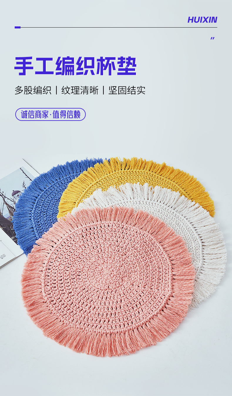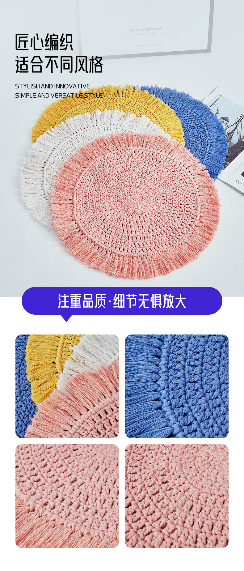 새로운 북유럽 스타일 손으로 짠 간단한 데스크탑 코스터 라운드 미끄럼 방지 매트 열 절연 보울 매트 플레이스 매트 코스터 매트