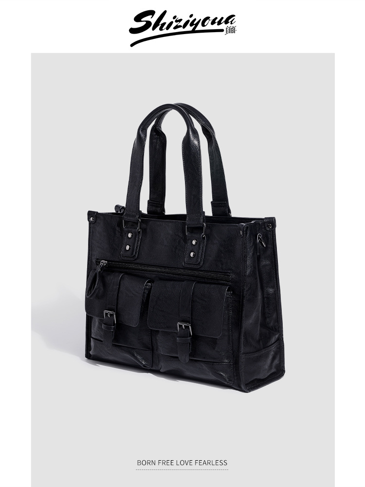 2024 새로운 남성 서류 가방 정품 가죽 캐주얼 컴퓨터 남성 가방 변호사 비즈니스 카우보이 어깨 크로스 바디 핸드백
