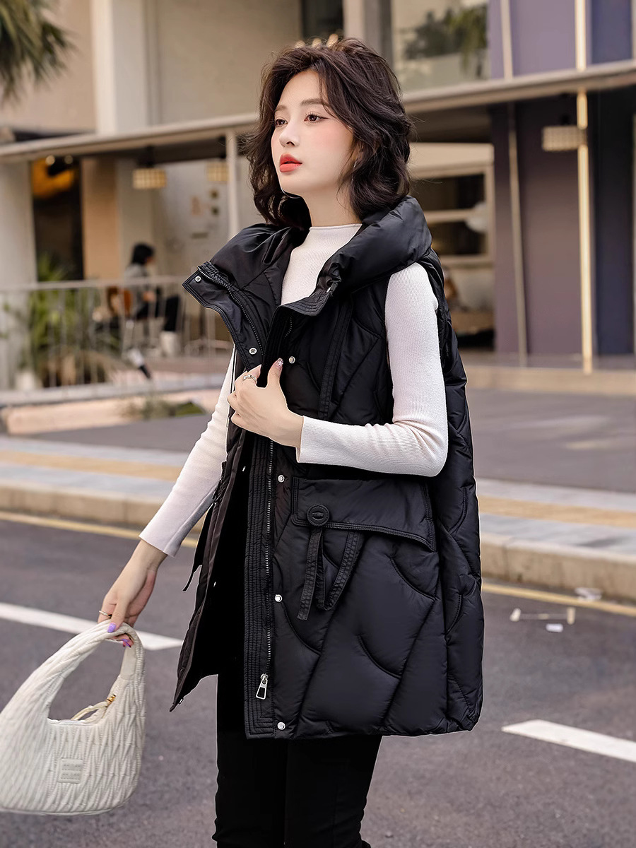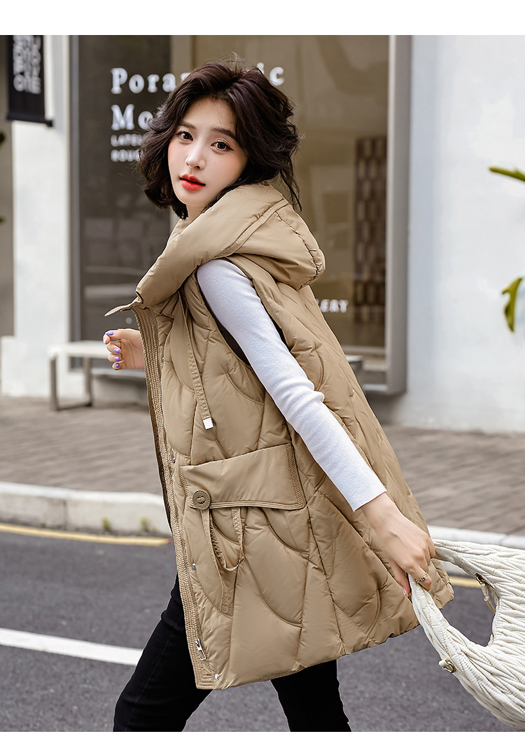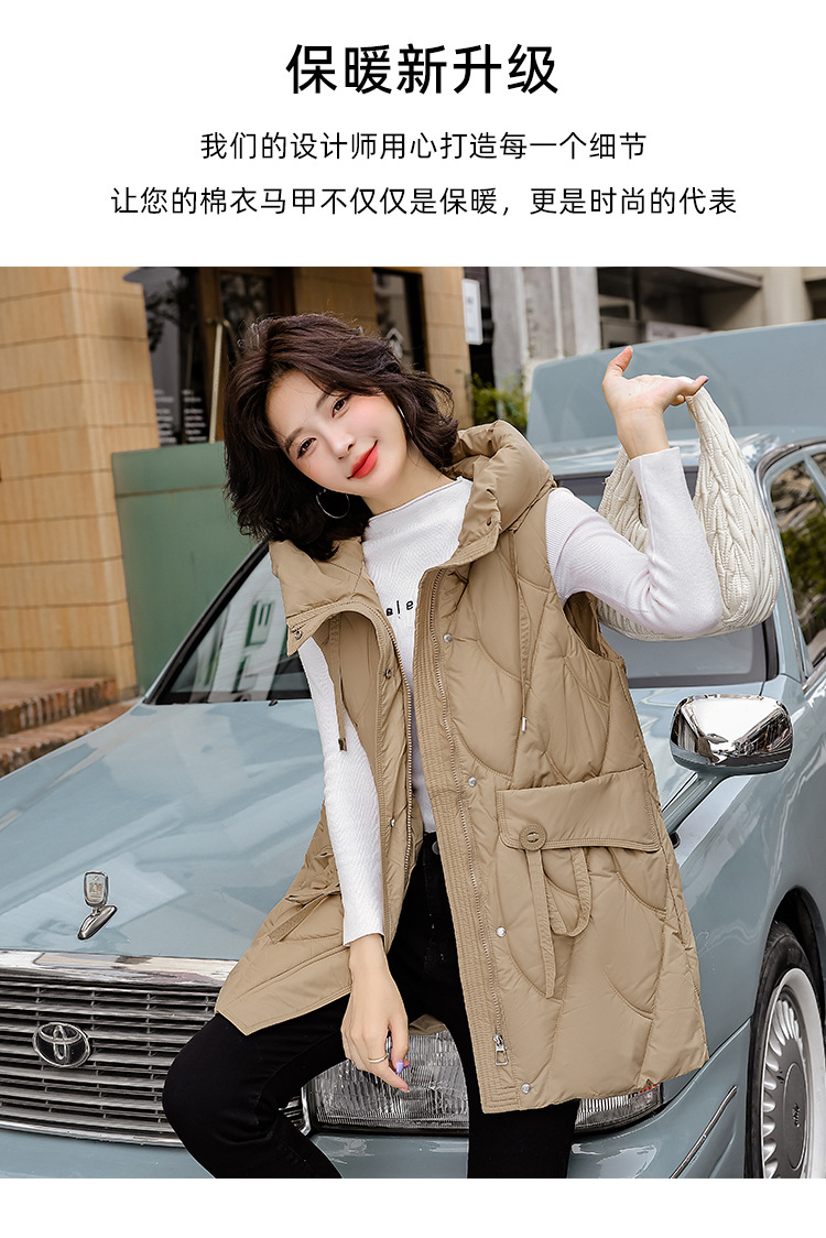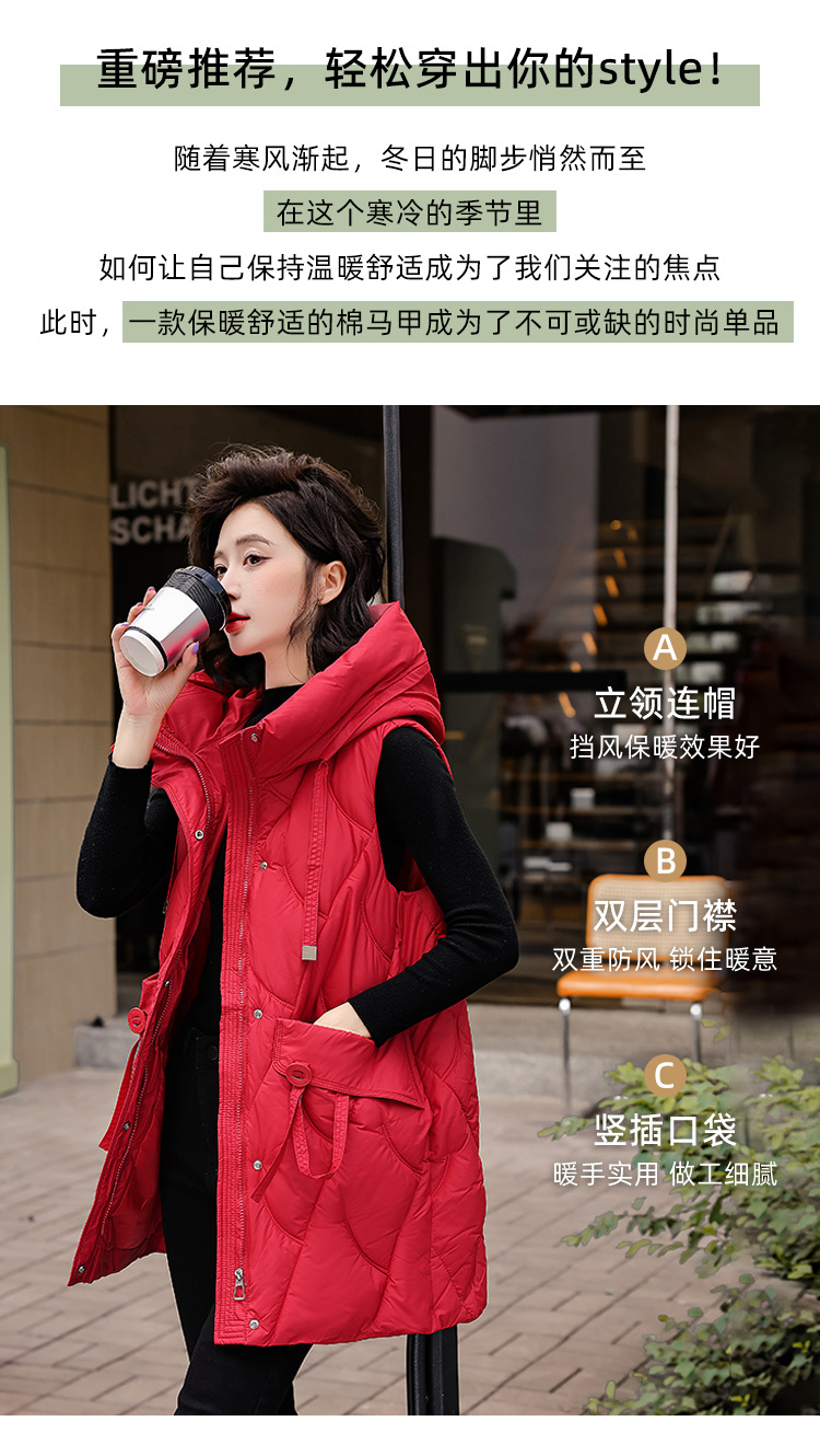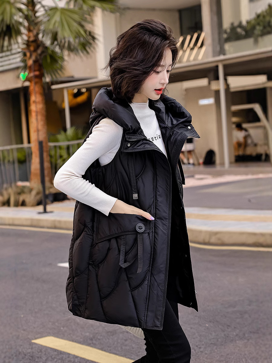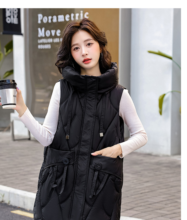 다운 코튼 조끼 여성의 긴 2024 가을과 겨울 플러스 사이즈 슬림 후드 양복 조끼 패딩 코튼 코트