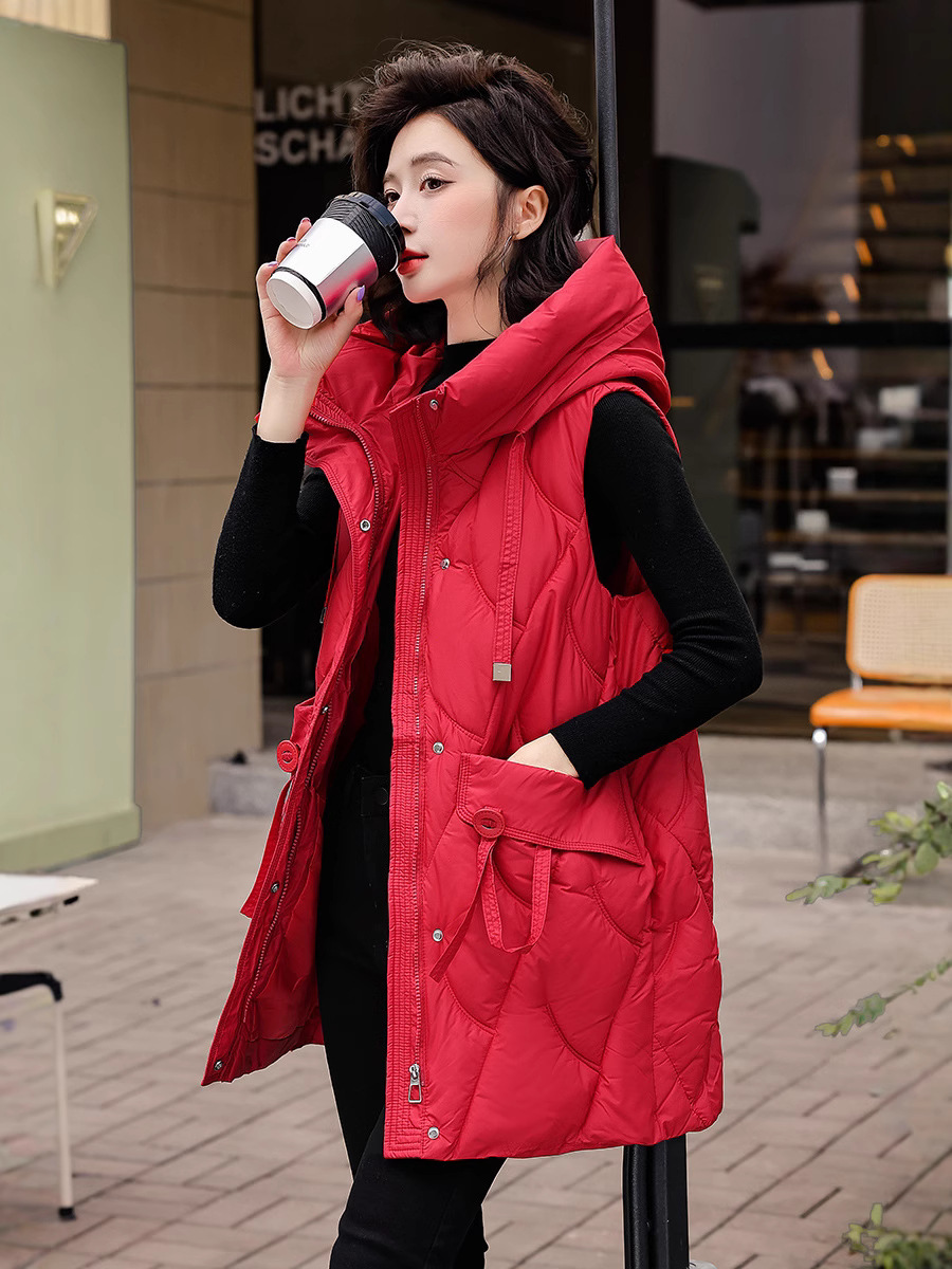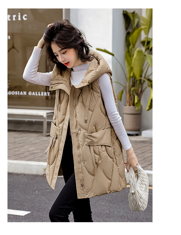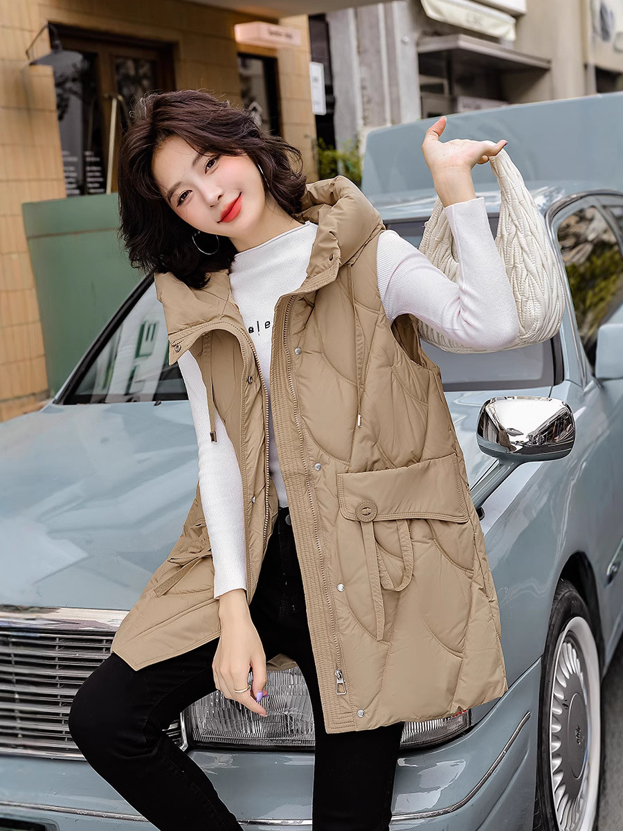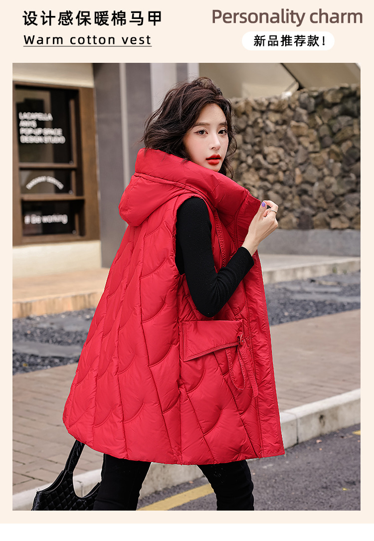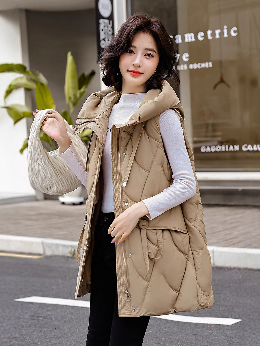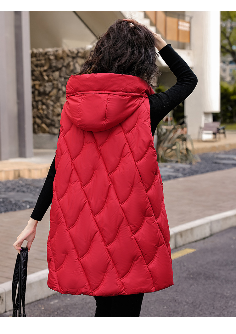 다운 코튼 조끼 여성의 긴 2024 가을과 겨울 플러스 사이즈 슬림 후드 양복 조끼 패딩 코튼 코트